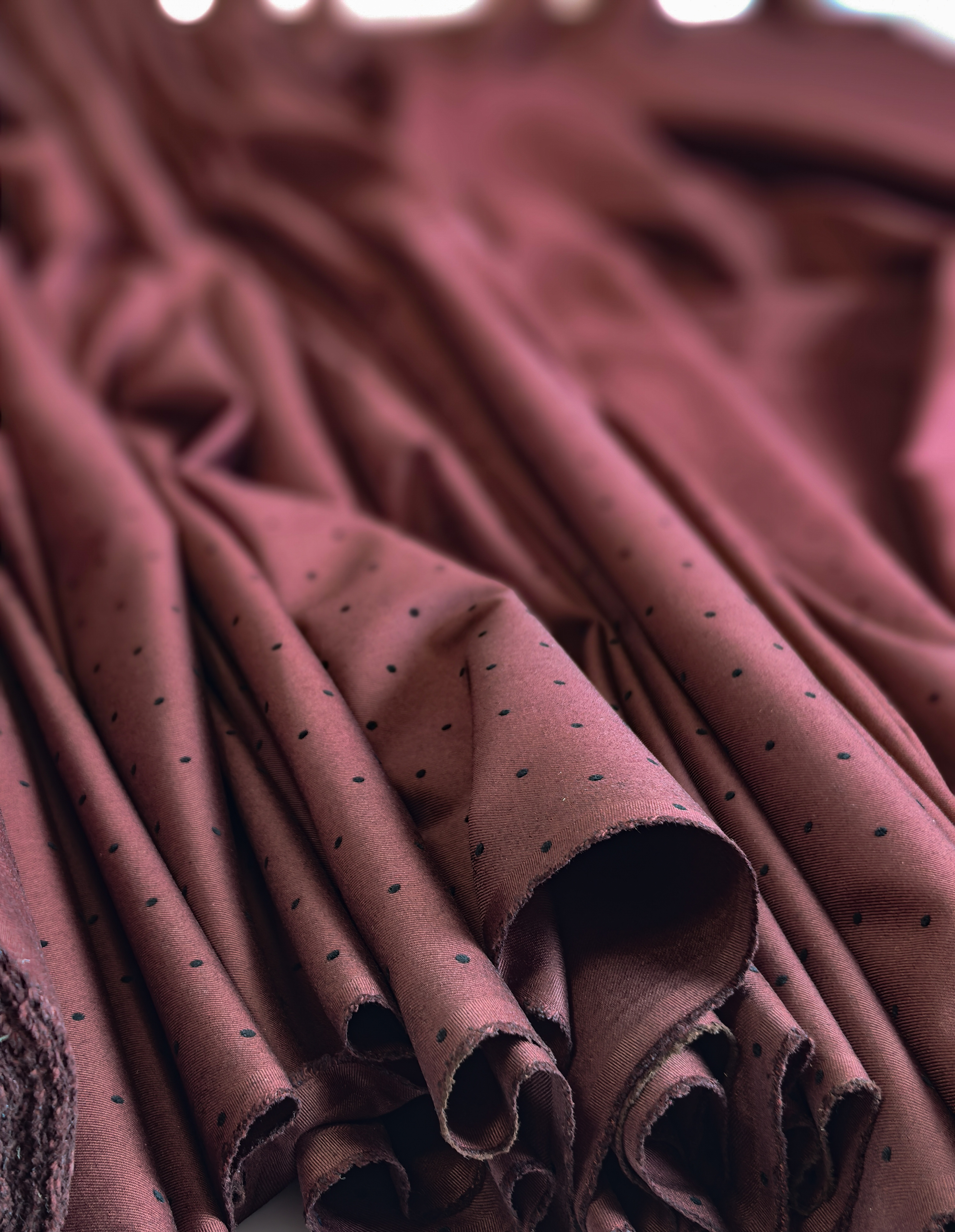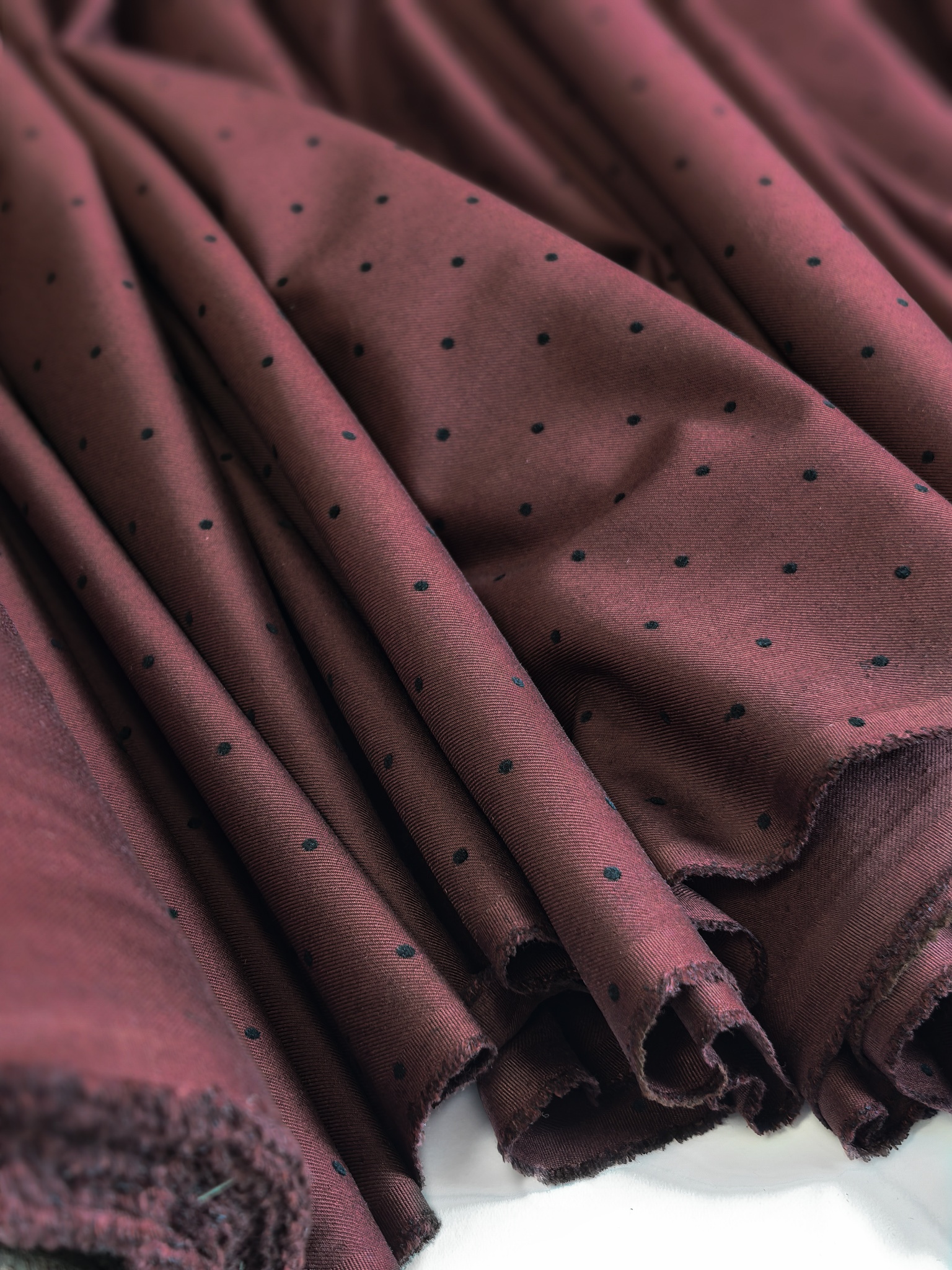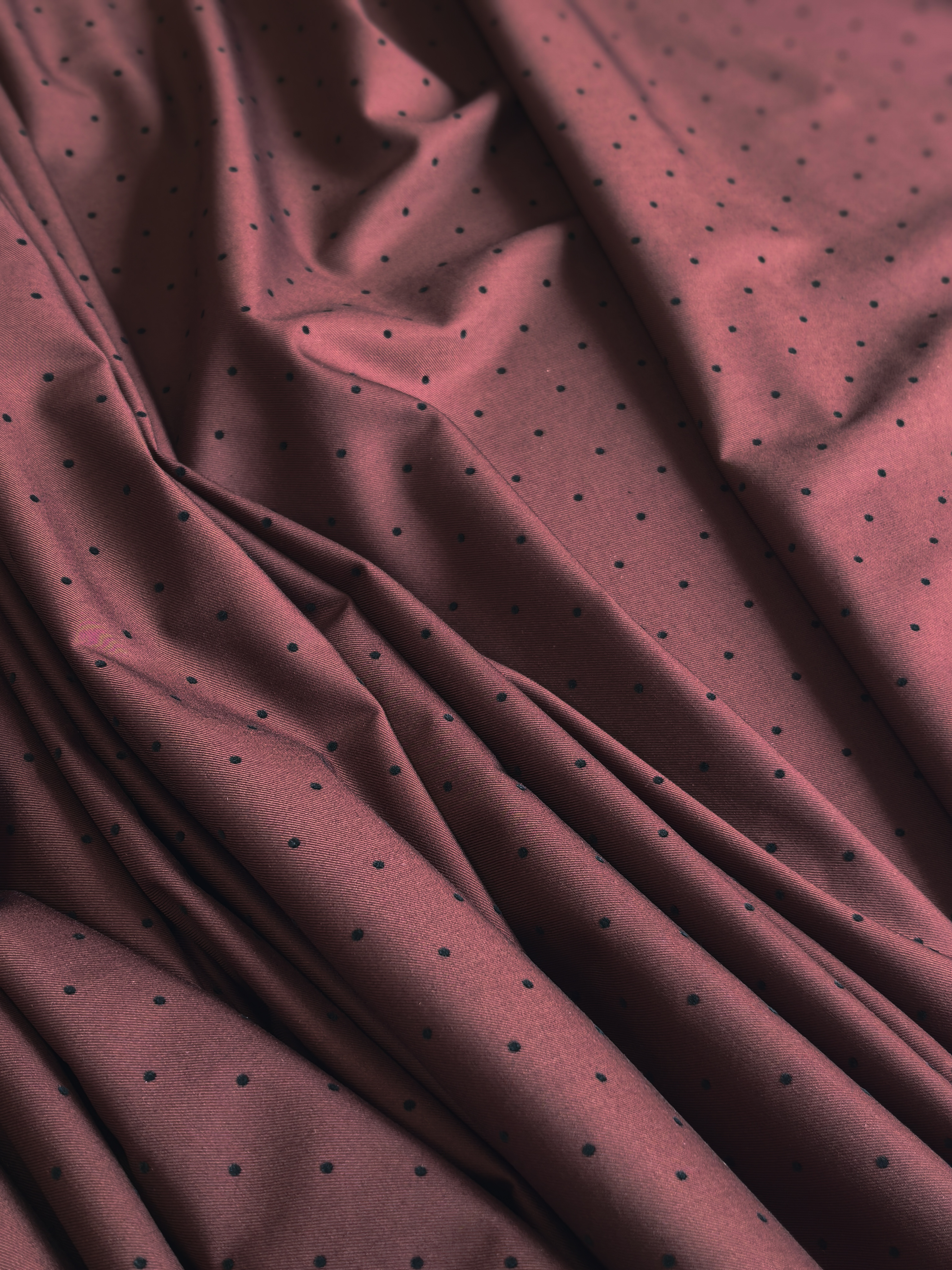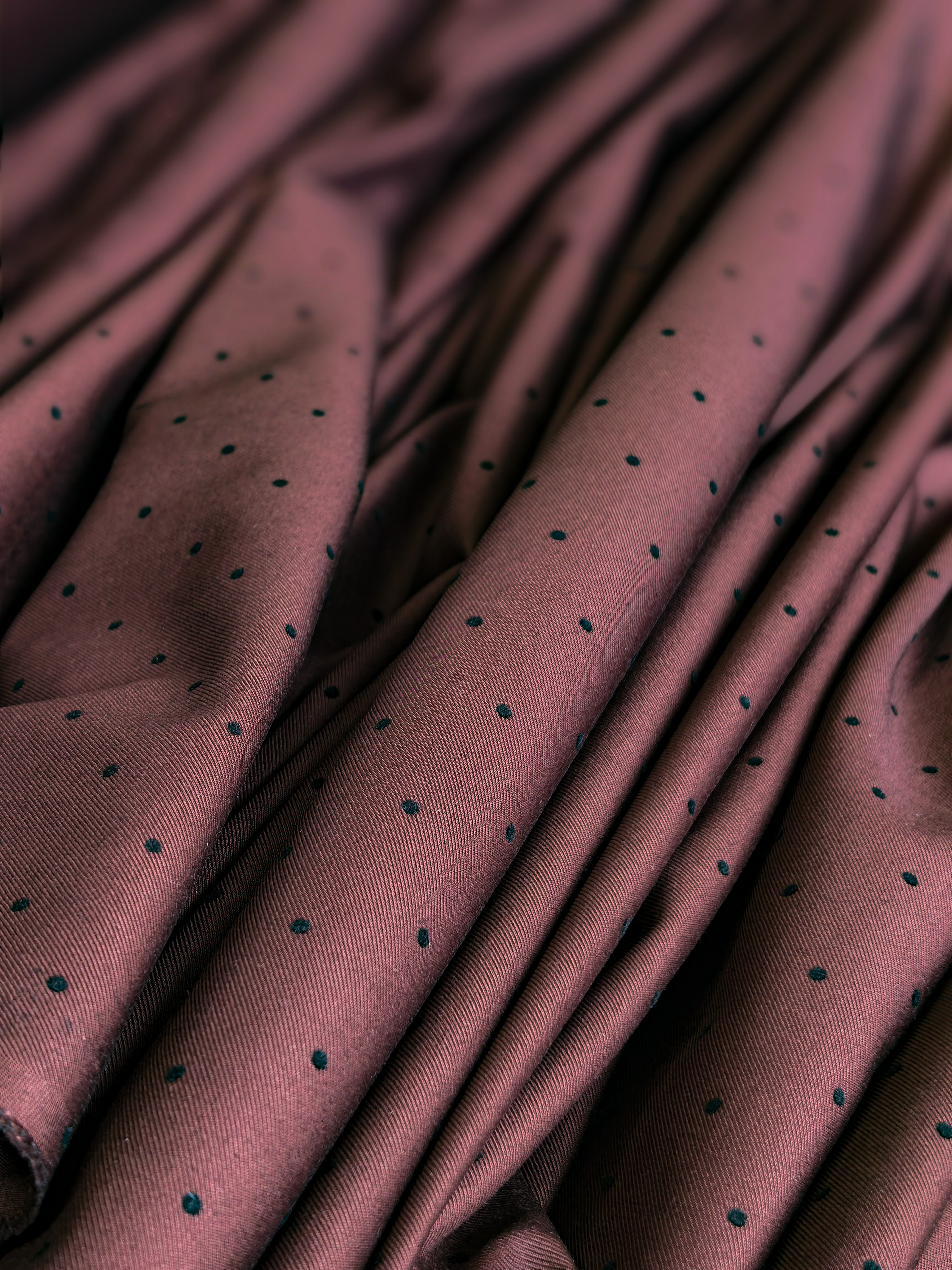 Элегантная костюмная ткань с бархатным горошком — идеальный выбор для стильных и практичных изделий. Материал приятный на ощупь, пластичный, легко утюжится, практически не сминается. Благодаря бархатному принту в горошек ткань выглядит дорого и благородно.