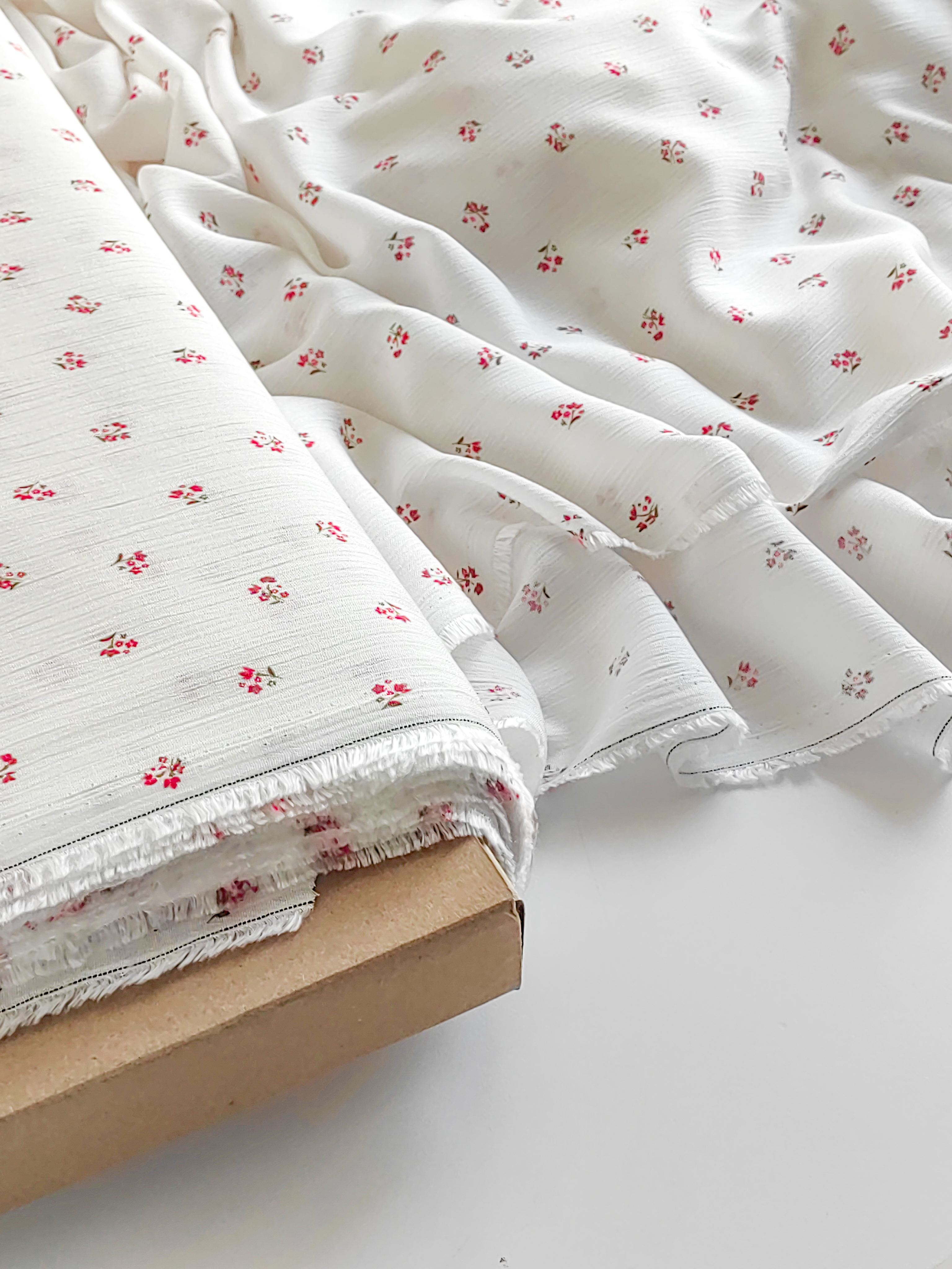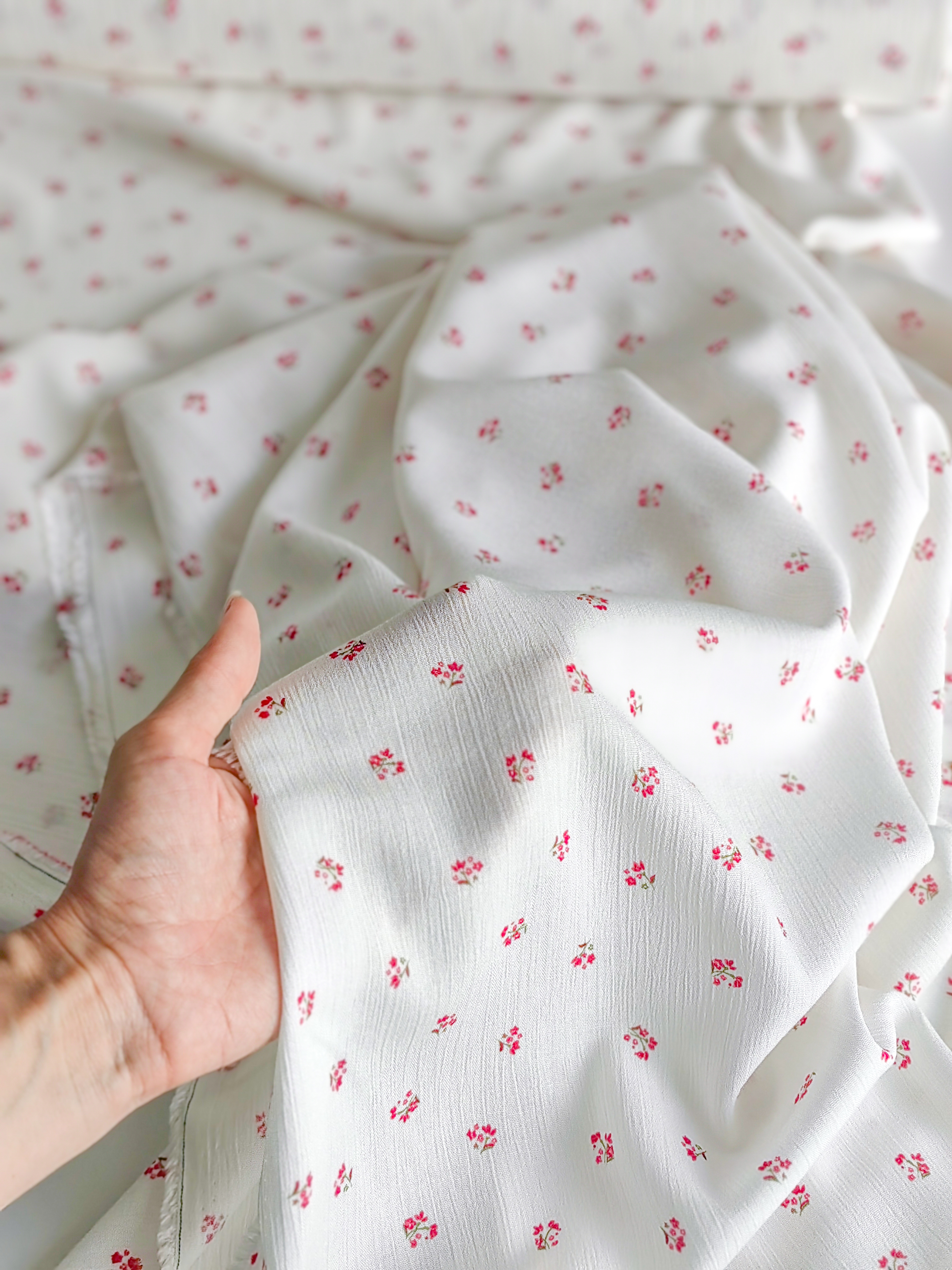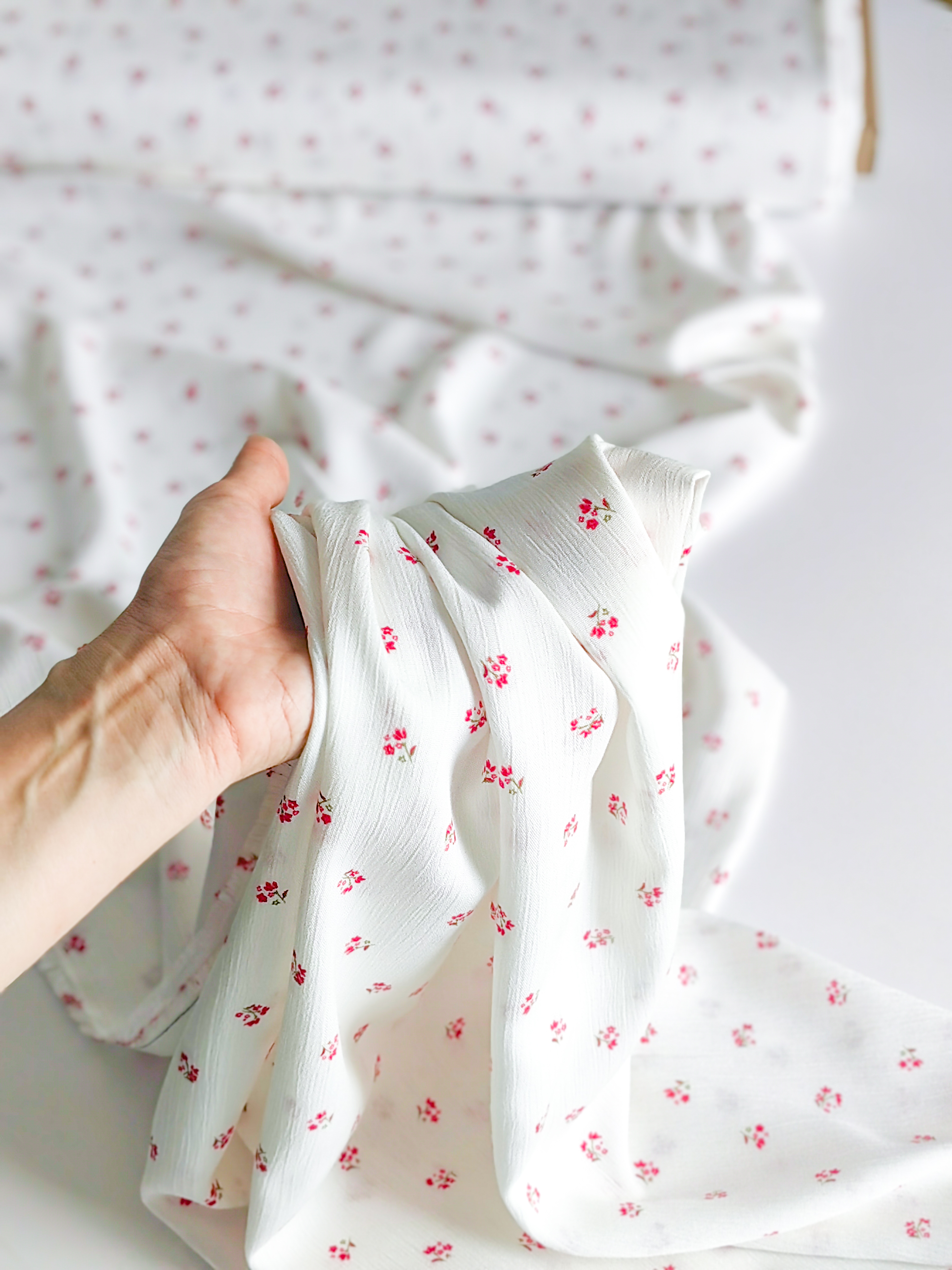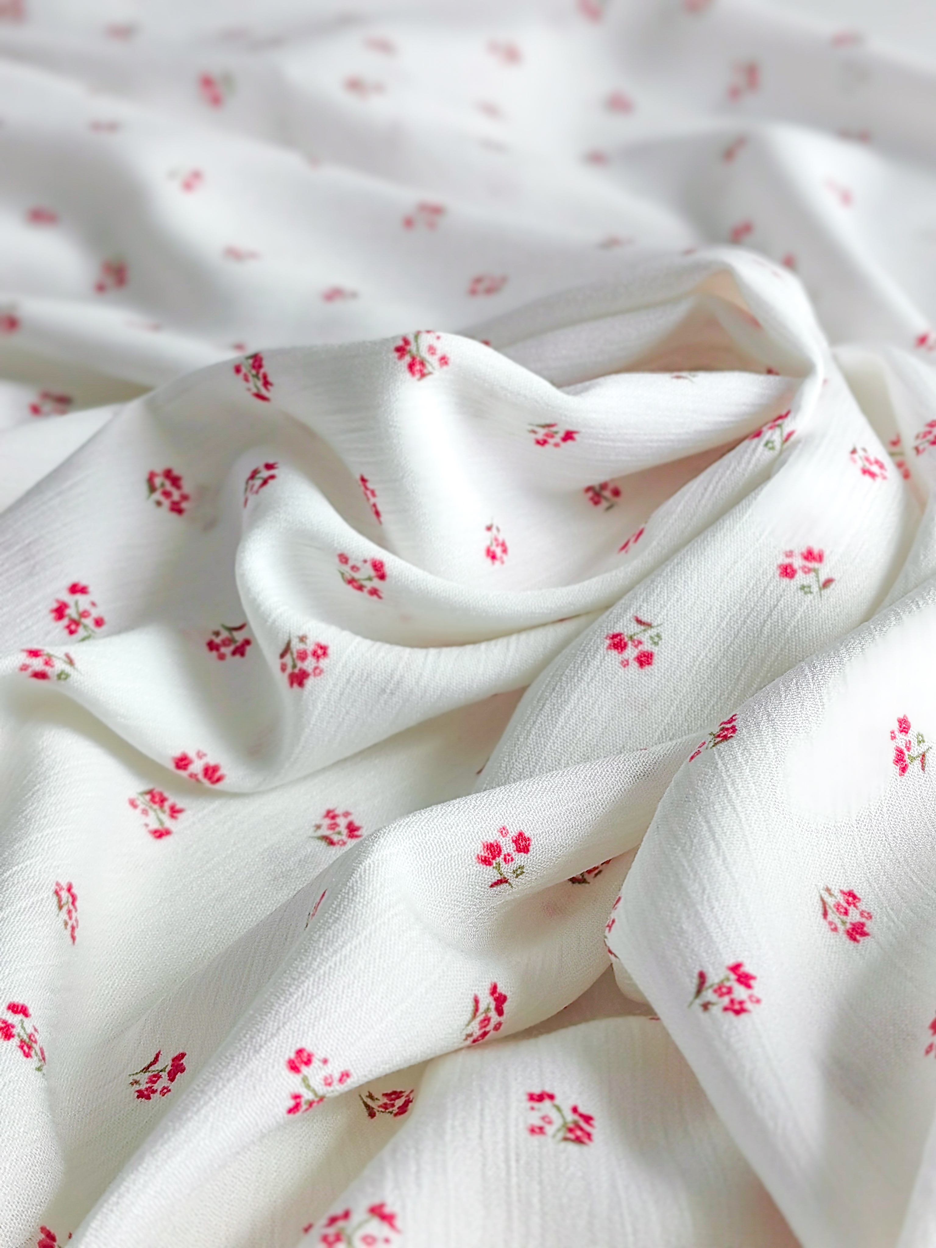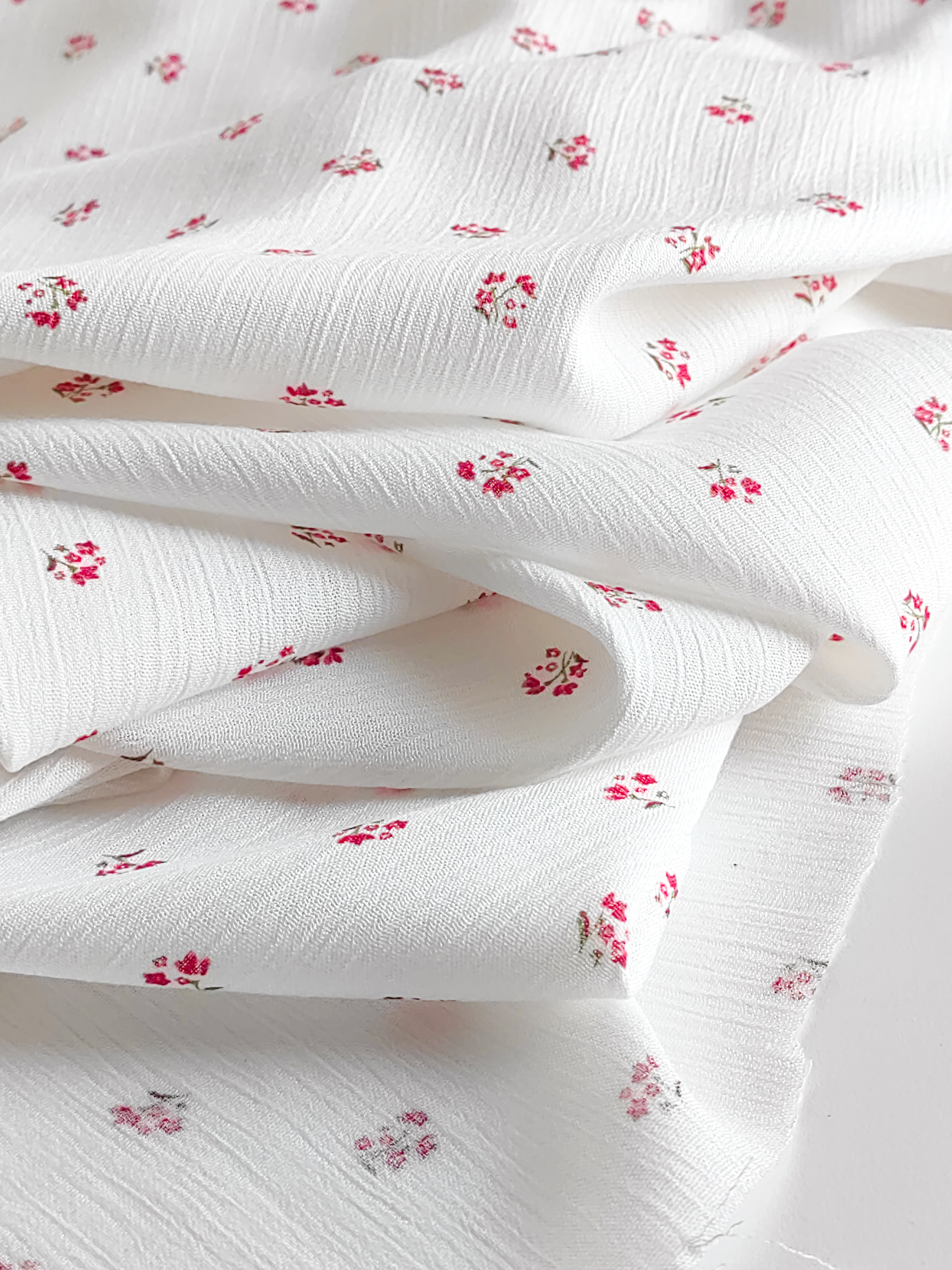 Летящая, струящаяся ткань, нежная, мягкая и приятная на ощупь.  Воздушная и красиво драпируется. За счет жатого эффекта - малосминаема. На тело немного просвечивает. Для верха можно шить без подкладки, для низа - по вашему желанию. Рекомендуем носить с бежевым бельем. Идеальна для пошива платьев, блуз, топов, юбочек. Размер цветочка 1 х 1 см Состав: 100% вискоза Плотность 125 г/м2 Ширина: 144 см Цена указана за шаг в 10х144 см Идеально подходит Тканый дублерин 31 гр/м.кв и Пуговки из Натуральной ракушки  Видео ткани смотрите тут Обратите внимание. Цветопередача может отличаться от действительности. Это зависит от модели и экрана вашего устройства, а так же вашего цветовосприятия. Магазин Галереятканей.рф не несёт ответственности за несоответствие цвета реального товара и изображения на Вашем устройстве. Мы рады предоставить вам дополнительные фото и видео при необходимости.