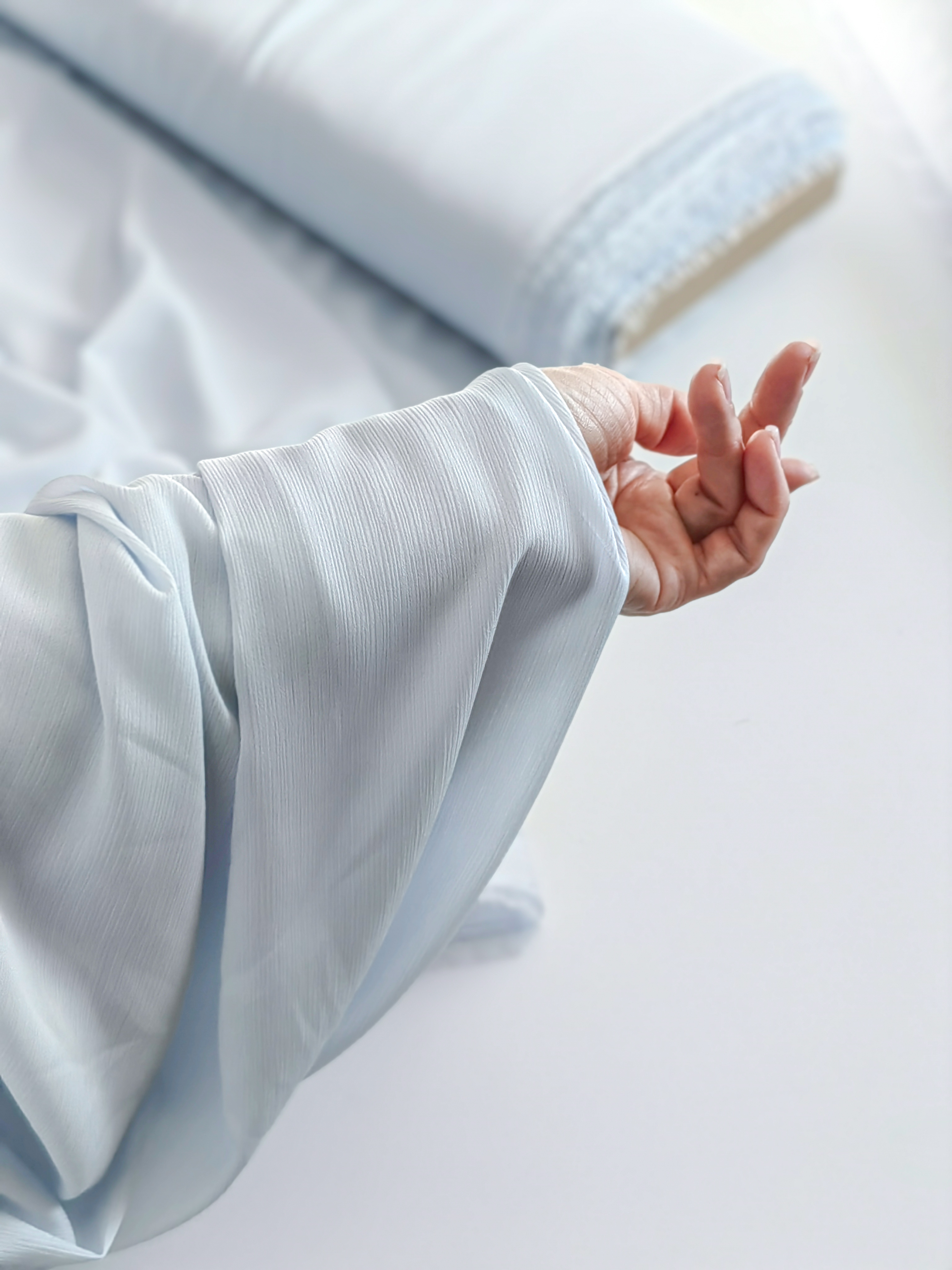 Легкий и воздушный шифон с жатым эффектом. Мягкий и приятный на ощупь. Подойдет для пошива платьев и блуз. Просвечивает, не мнется.