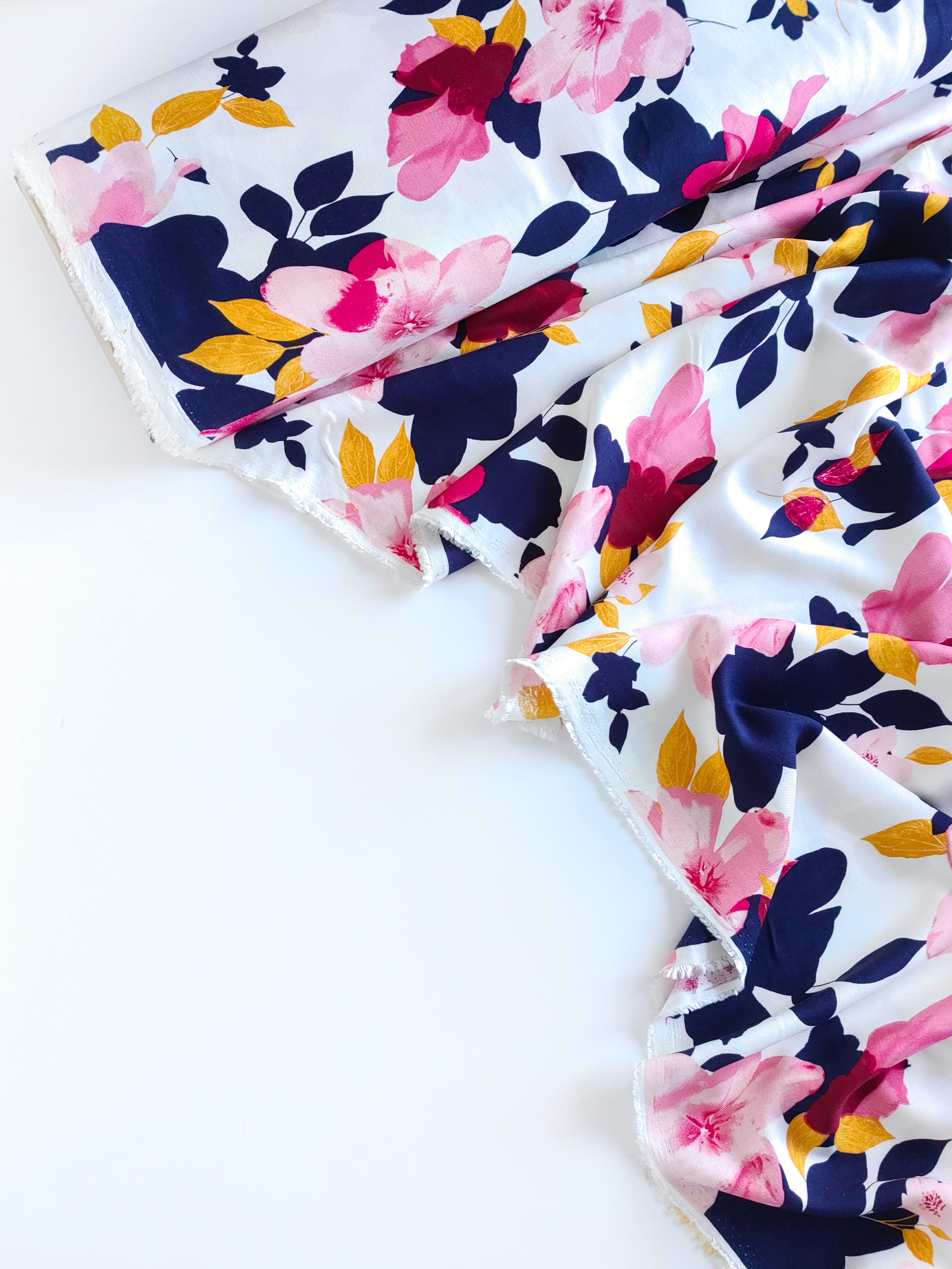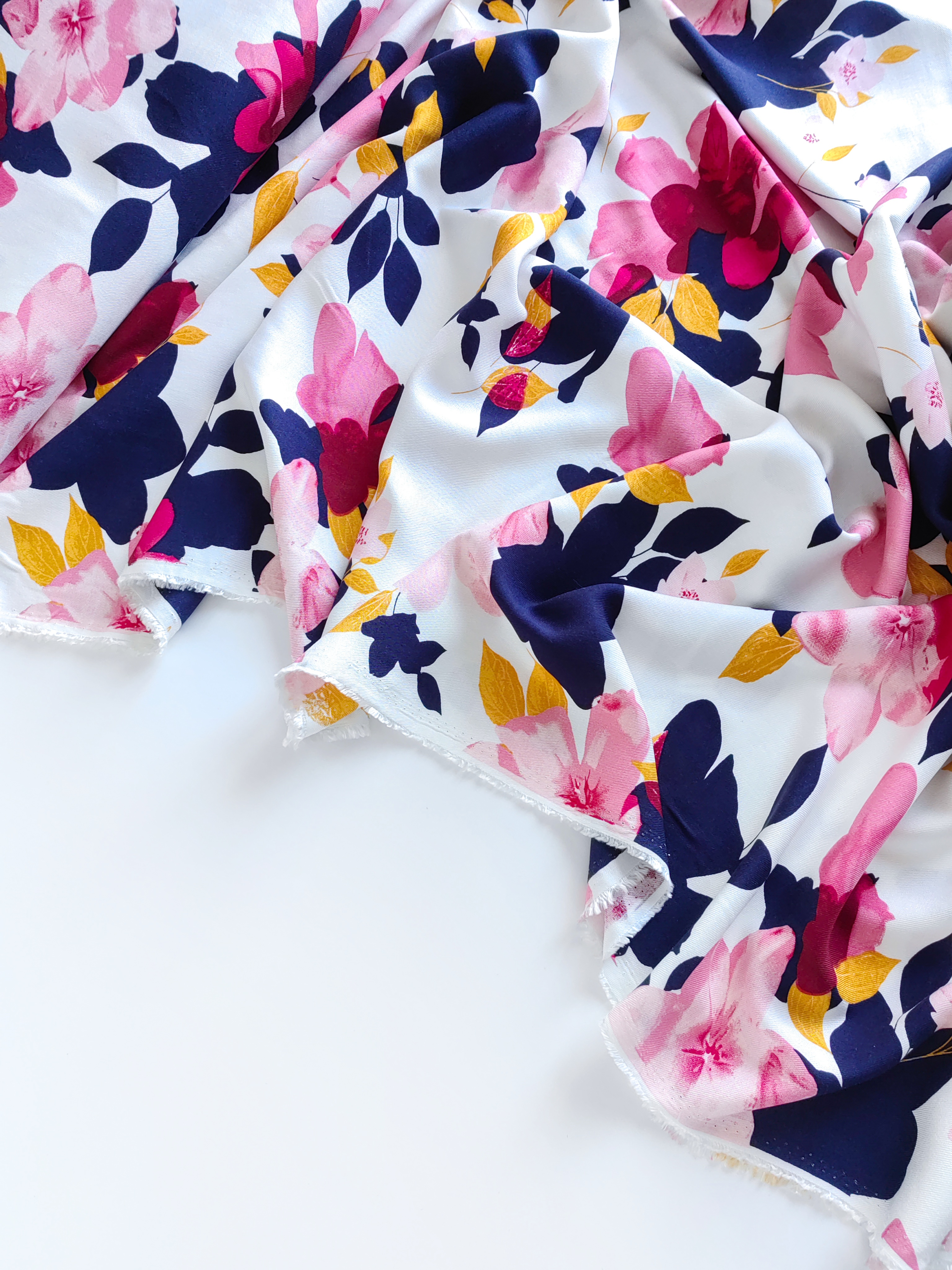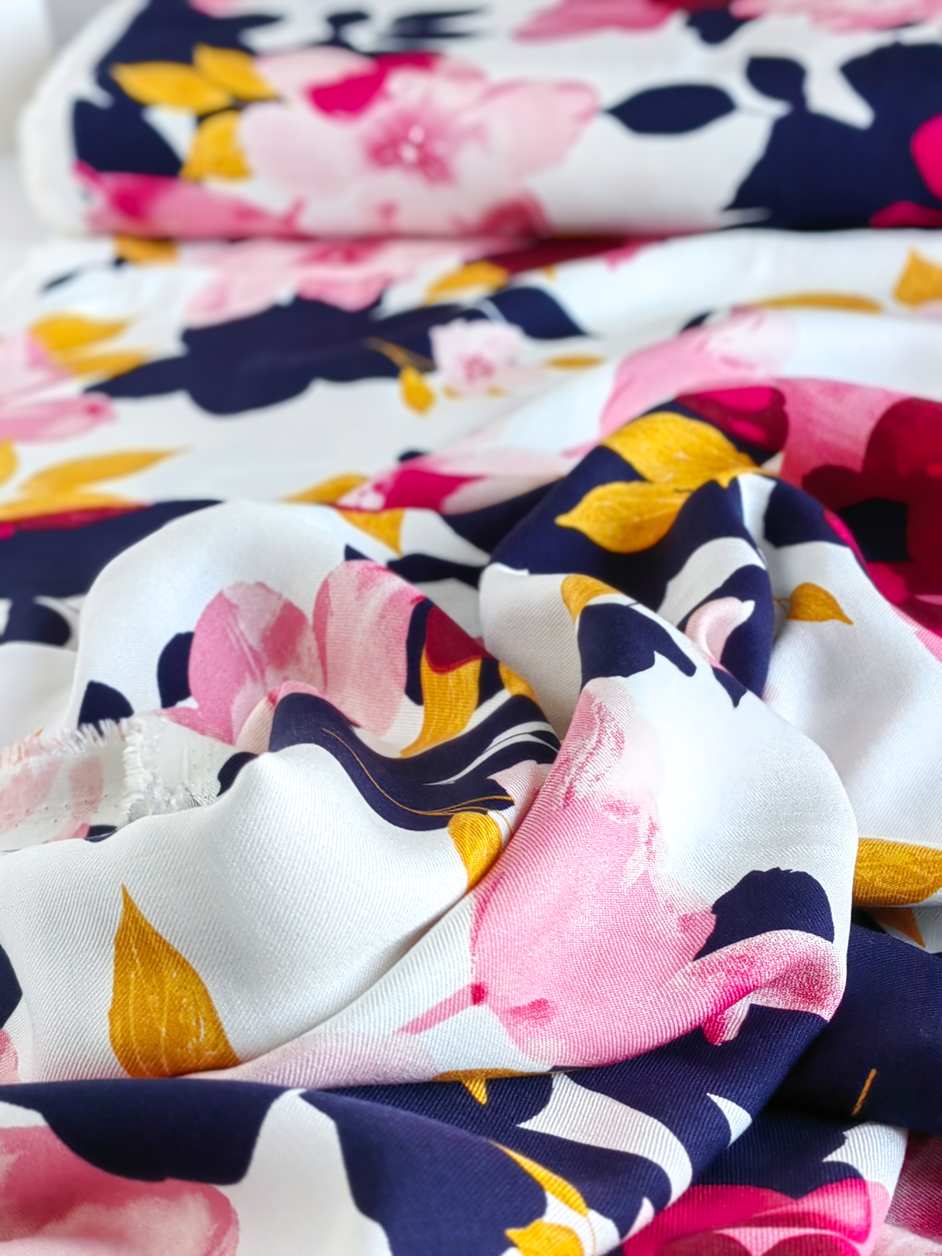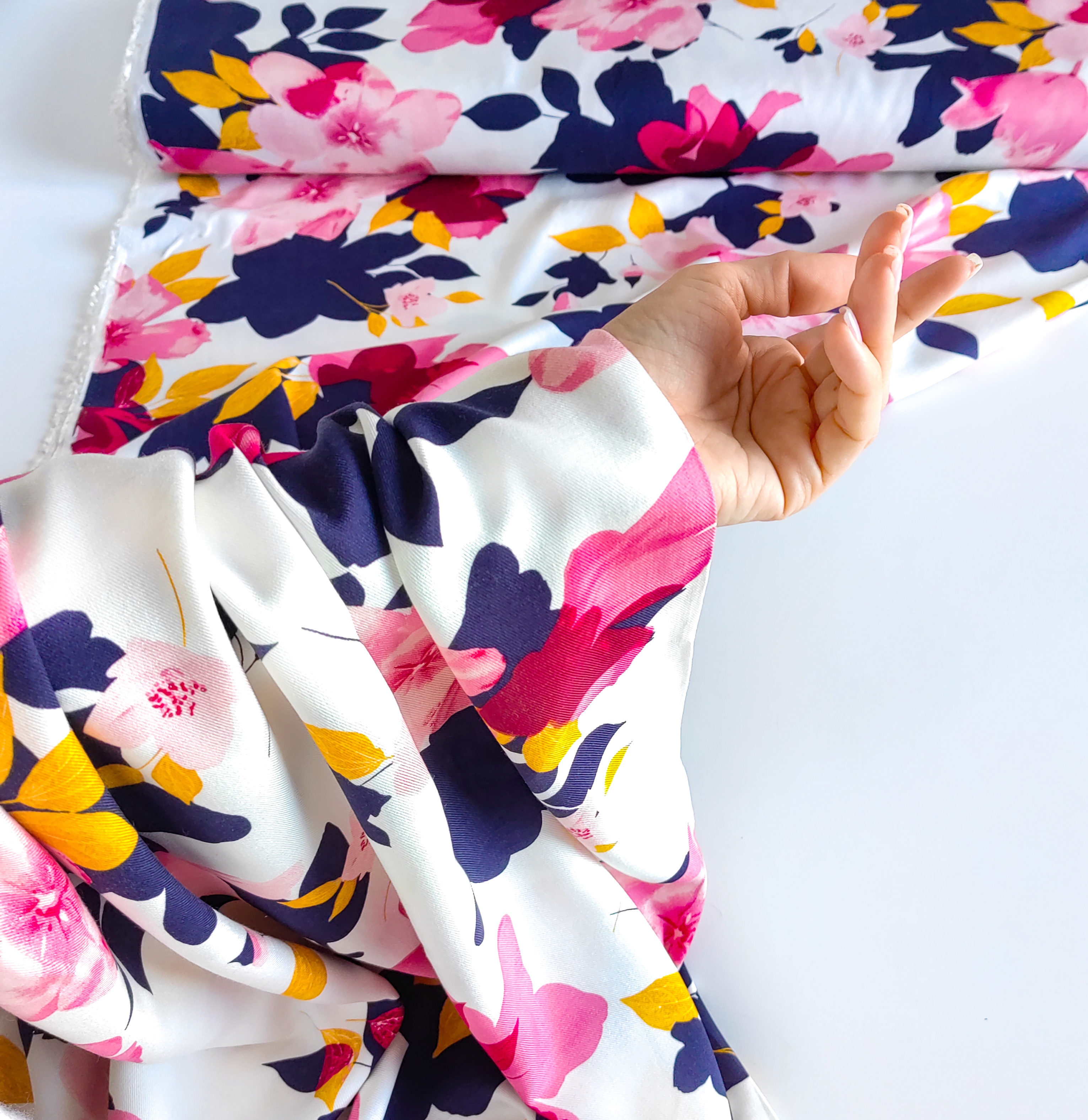 Летящая, струящаяся ткань, нежная и приятная на ощупь. Имеет диагональное плетение. Не просвечивает, не тянется, не электризуется. Воздушная и красиво драпируется.