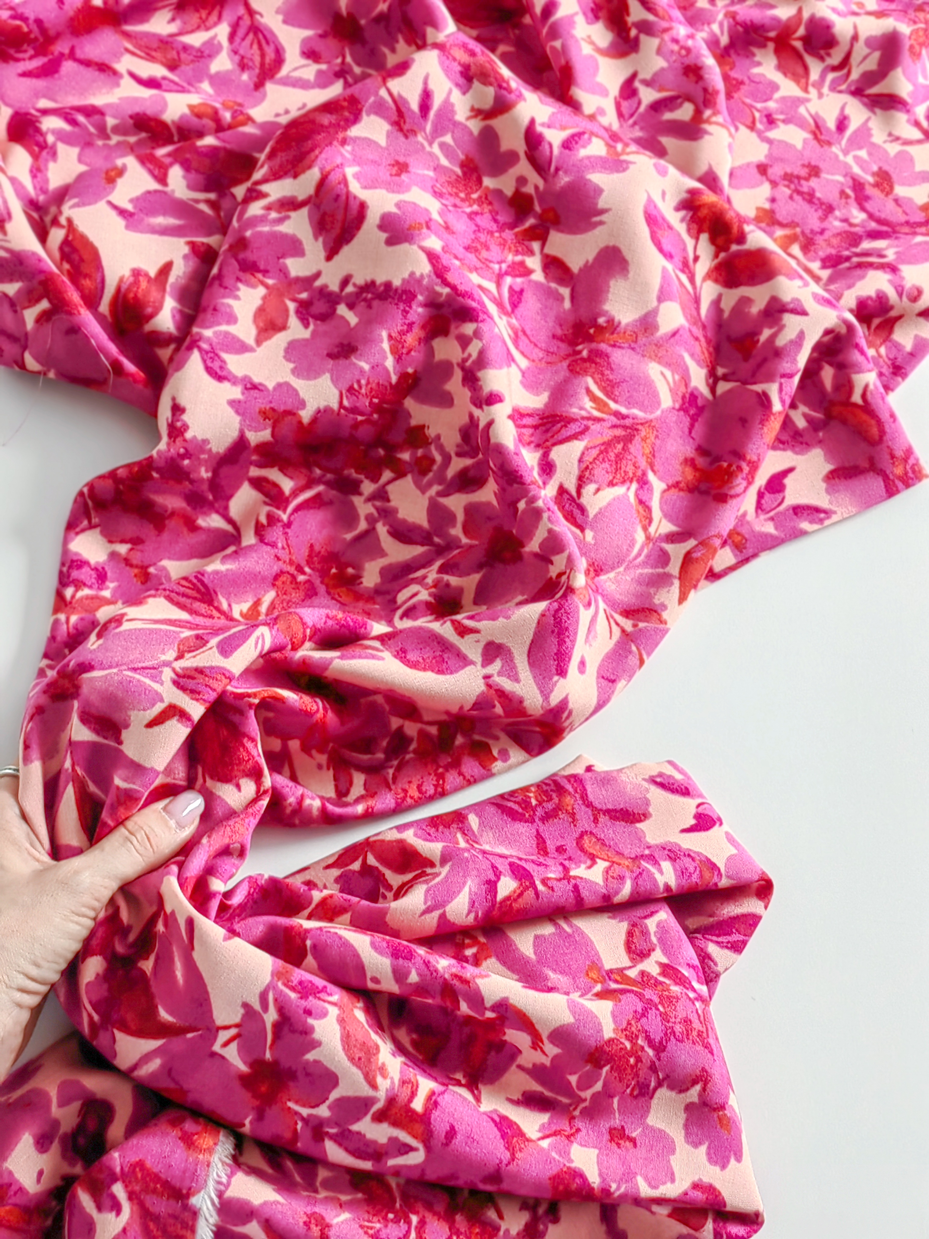 Летящая, струящаяся ткань, нежная и приятная на ощупь. Воздушная и красиво драпируется, не тянется. Идеальна для пошива платьев, блуз, юбочек.