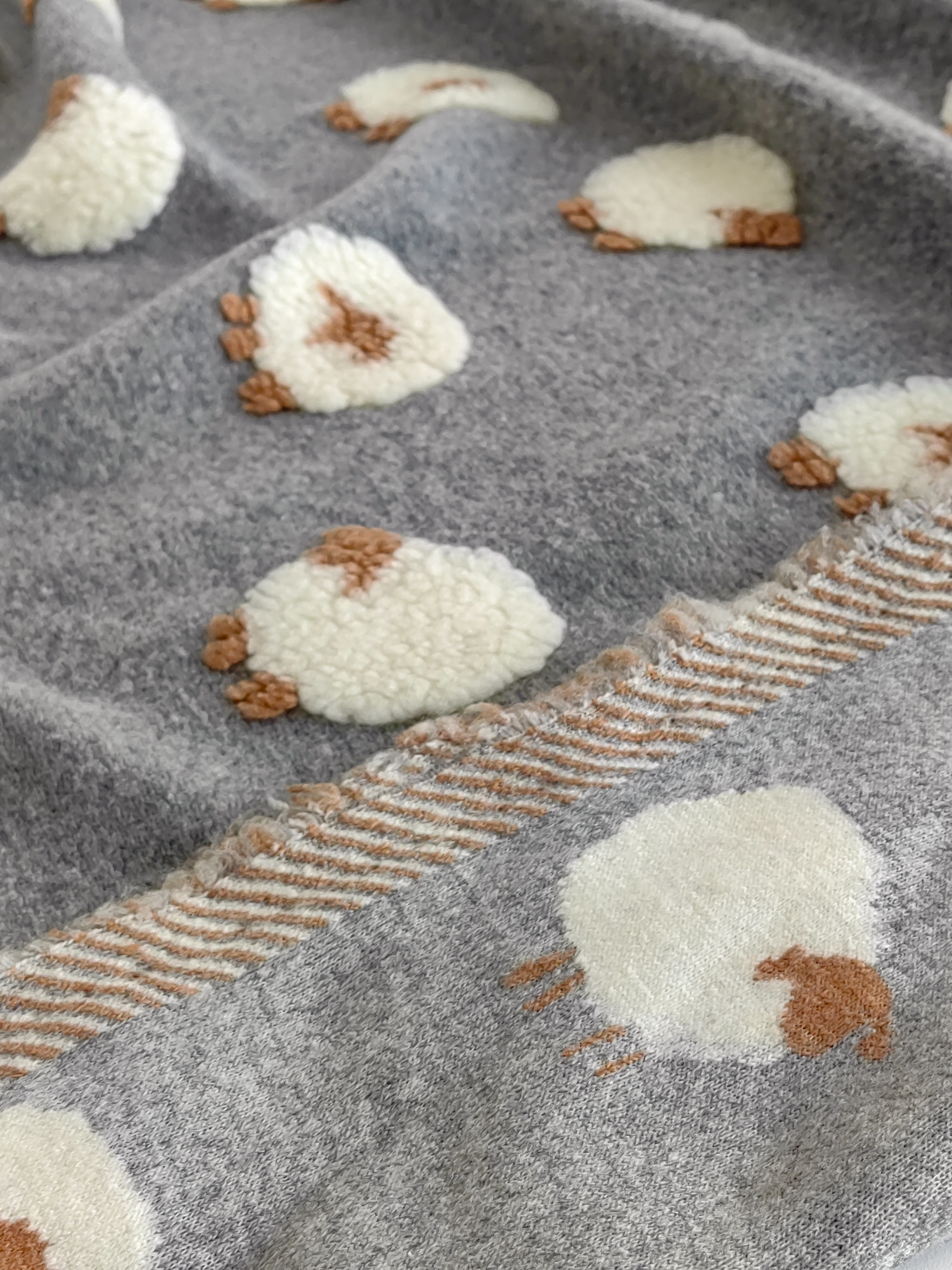 Мягкий трикотаж с вышитыми объемными барашками для необычных кардиганов, свитшотов, пледов, домашних костюмов. Аккуратная вязка, мягкий, приятный на ощупь, сохраняет форму при растяжении. Тянется не сильно.