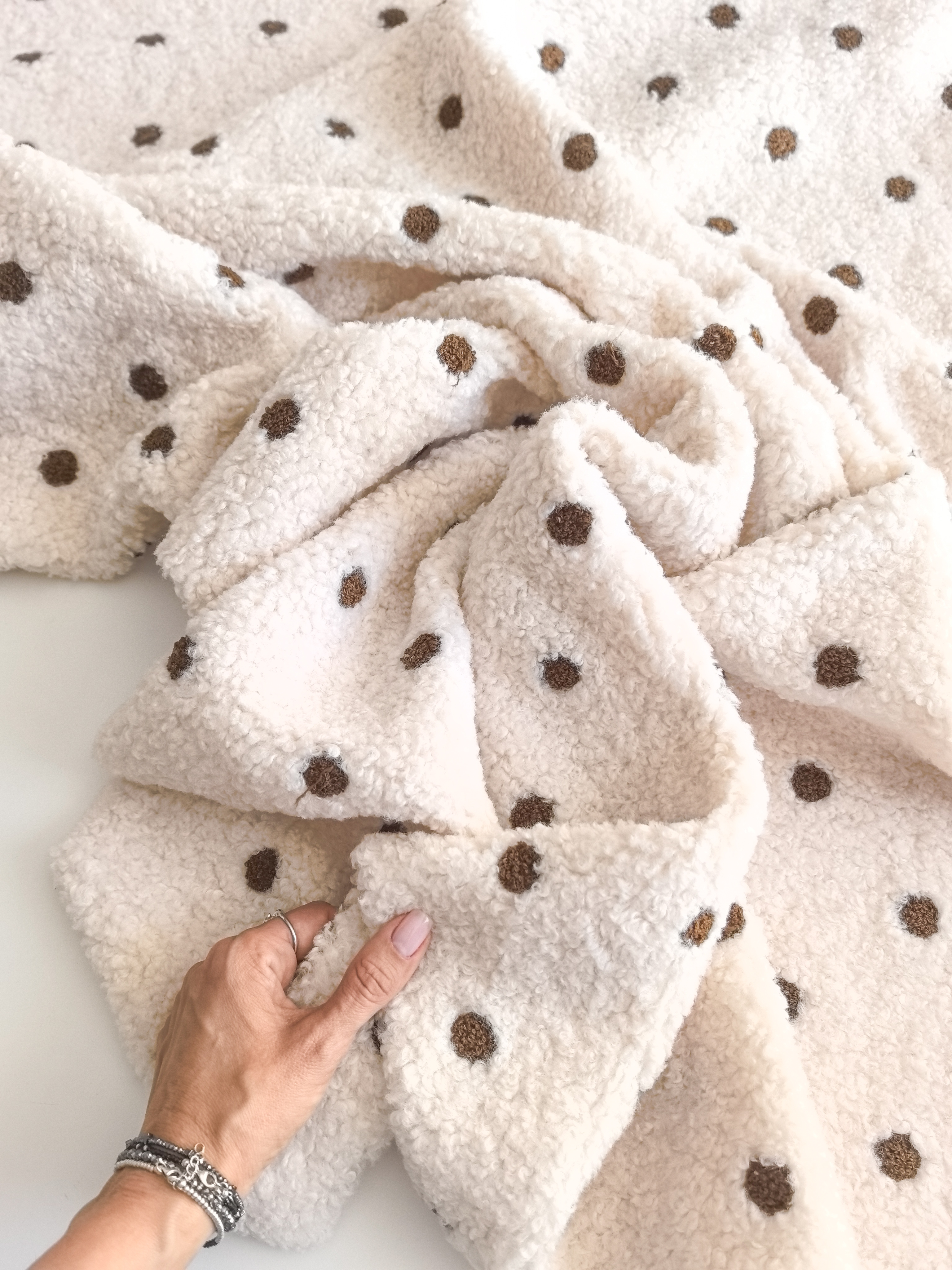 Мягкое букле на трикотажной основе для необычных кардиганов, свитшотов, пледов, домашних костюмов, бомберов. Аккуратная вязка, мягкий, приятный на ощупь, сохраняет форму при растяжении. Тянется не сильно.