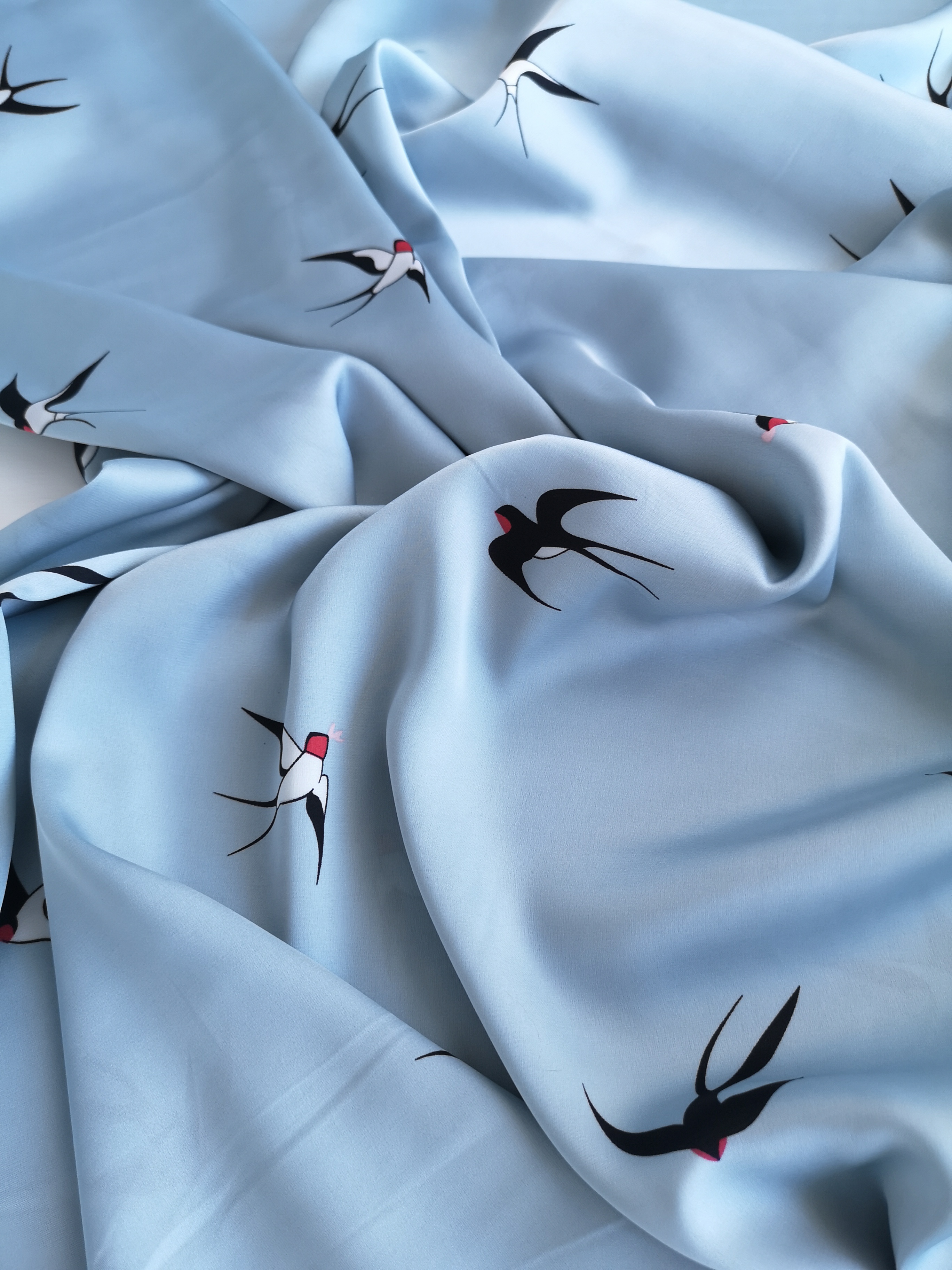 Приятный на ощупь гладкий супер софт. Легкая и воздушная ткань, практически не сминается, хорошо утюжится. Идельная ткань для пошива платьев, юбочек и блуз.