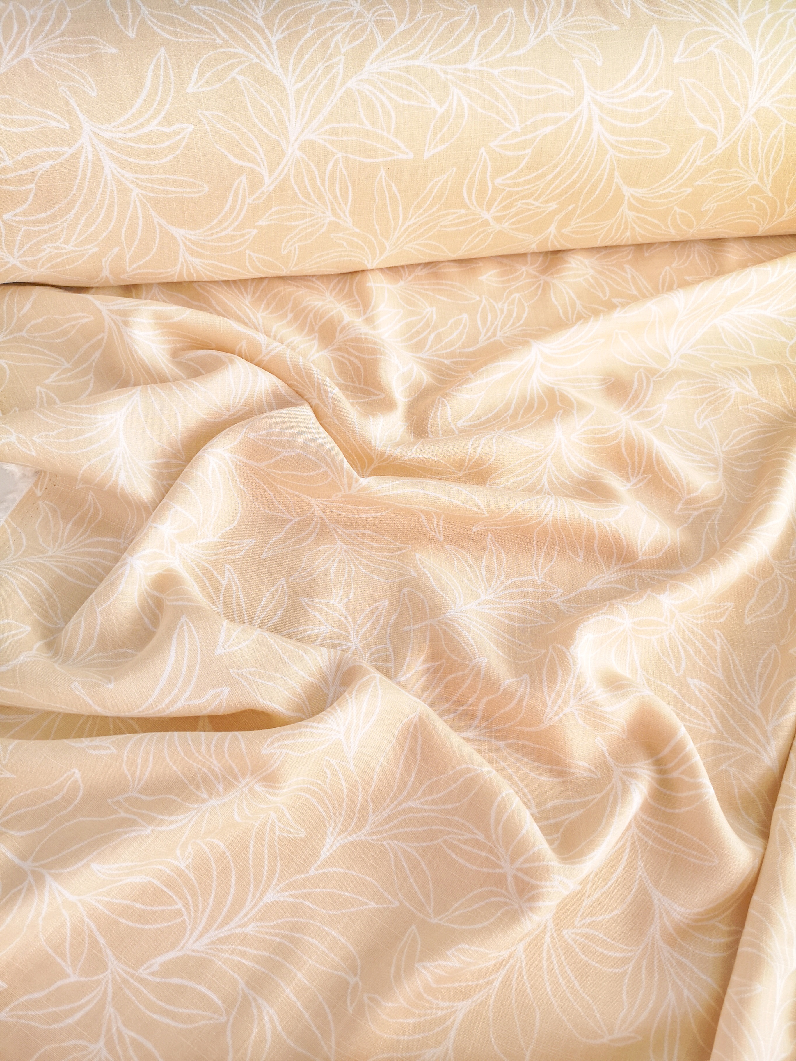 Летящая, струящаяся ткань, нежная и приятная на ощупь. Воздушная и красиво драпируется, не тянется. На тело немного просвечивает. Идеальна для пошива рубашек, платьев, блуз, юбочек, широких брюк, домашних комплектов.