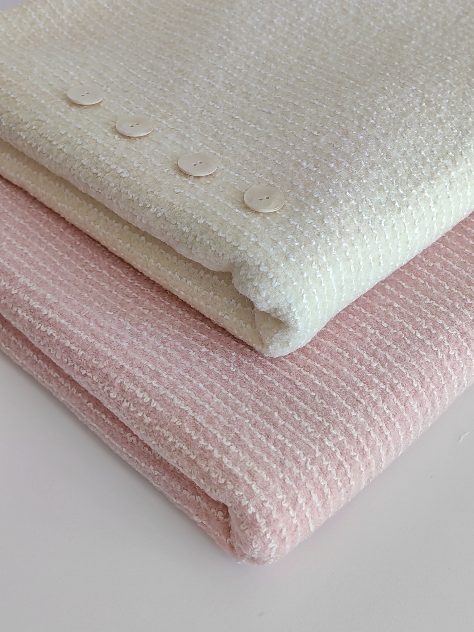 Элегантная костюмная ткань молочного оттенка с выразительной фактурой.