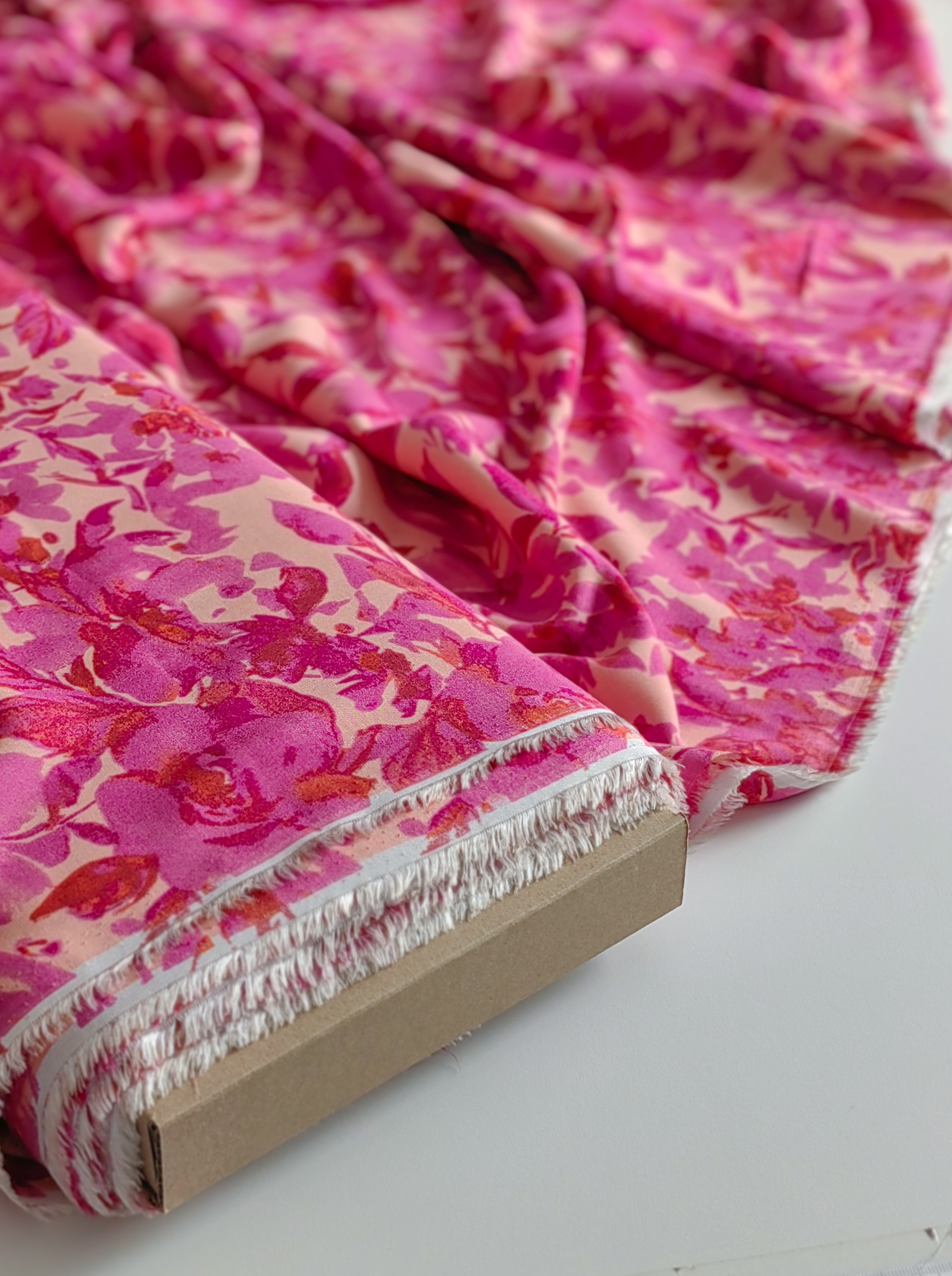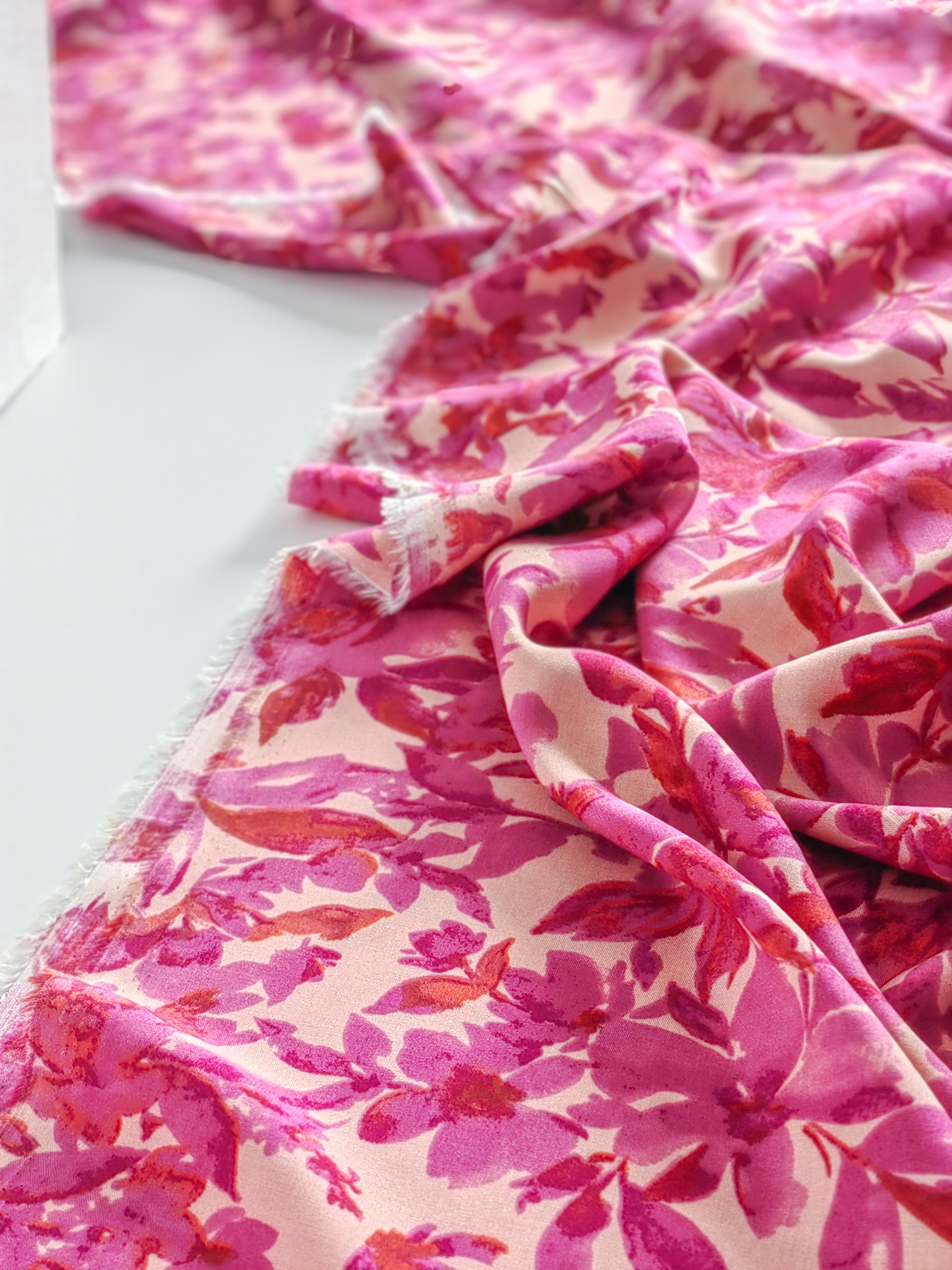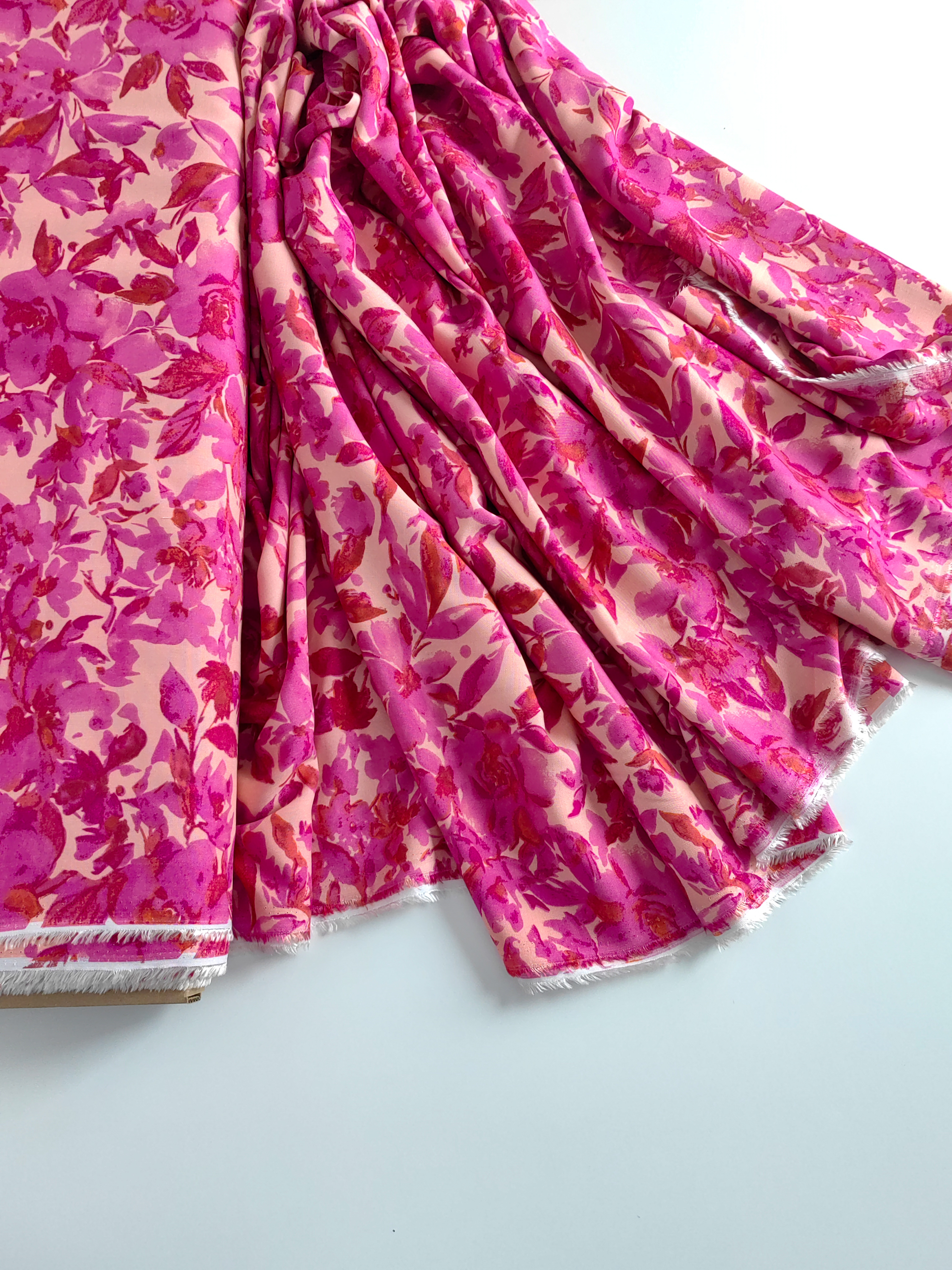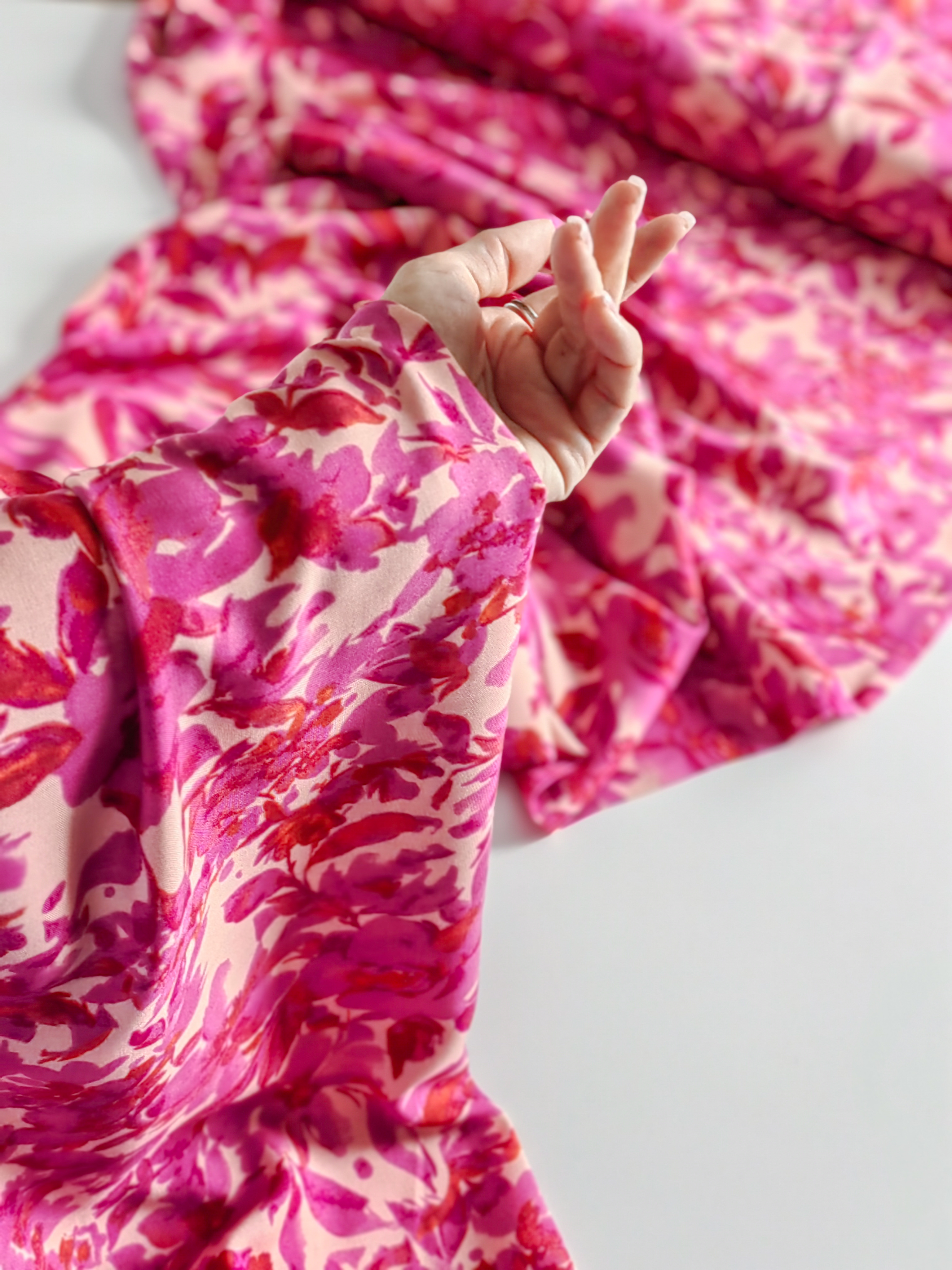Летящая, струящаяся ткань, нежная и приятная на ощупь. Воздушная и красиво драпируется, не тянется. Идеальна для пошива платьев, блуз, юбочек.