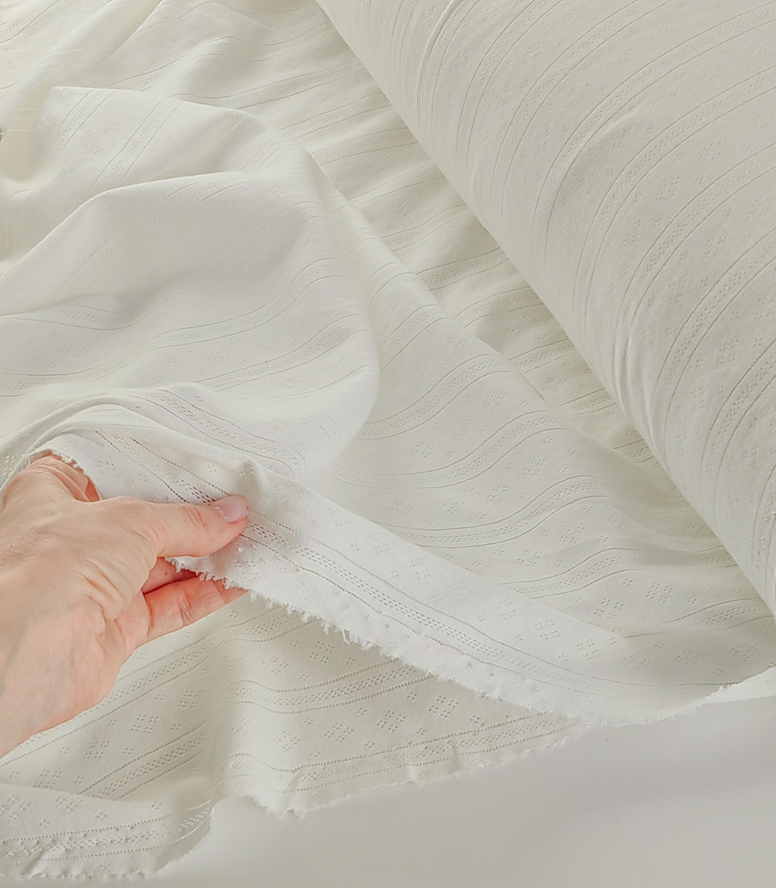 Почувствуйте нежность и легкость с нашим ажурным трикотажем Pointelle (Пуантель) из 100% натурального хлопка.