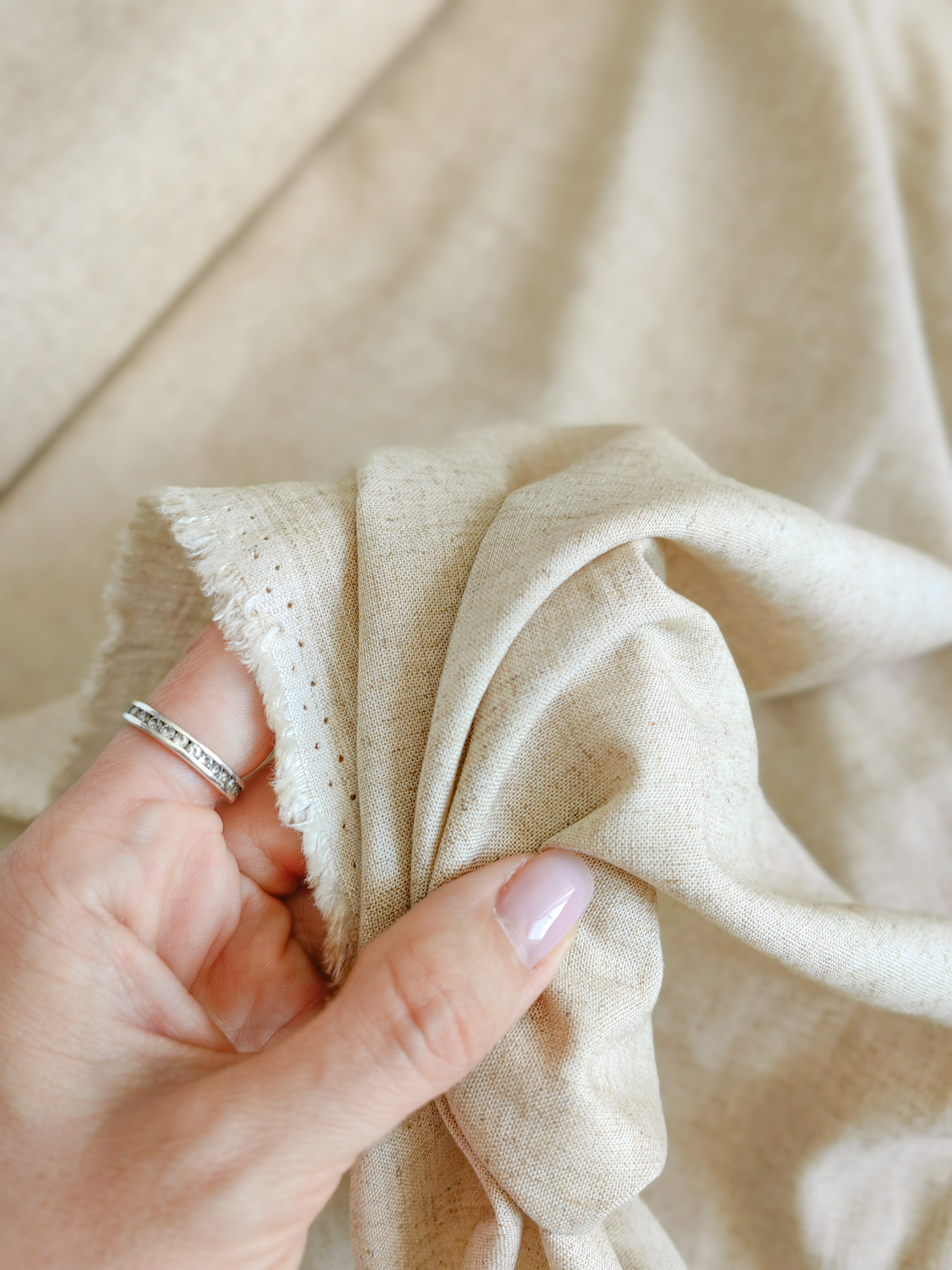 Лен с вискозой в натуральном оттенке. Вискоза добавляет льну пластичности, получаются более мягкие складки, при этом остаются все прекрасные свойства льняного полотна. Еще один плюс льна с вискозой,что заломы при сминании получаются более мягкими. Натуральный, дышащий, гипоаллергенный!  Идеально подходит для платьев, рубашек, брюк, сарафанов, шорт и для детской одежды. Состав: 90% лен 10% вискоза  Ширина 142 см Плотность 125г/м2 Подходит Тканый дублерин Молочный 46 гр/м.кв  Обратите внимание. Цветопередача может отличаться от действительности. Это зависит от модели и экрана вашего устройства, а так же вашего цветовосприятия. Магазин Галереятканей.рф не несёт ответственности за несоответствие цвета реального товара и изображения на Вашем устройстве. Мы рады предоставить вам дополнительные фото и видео при необходимости.