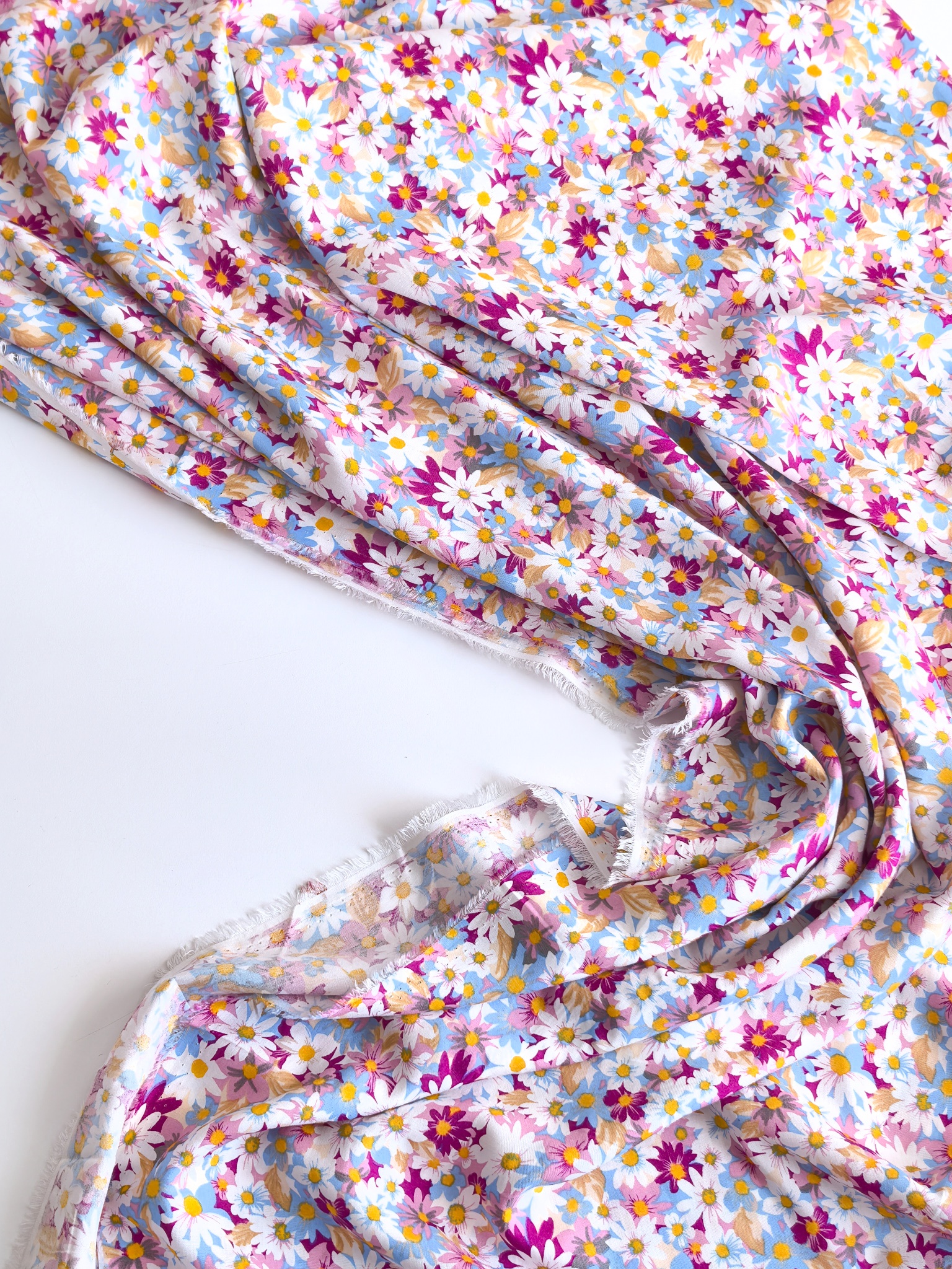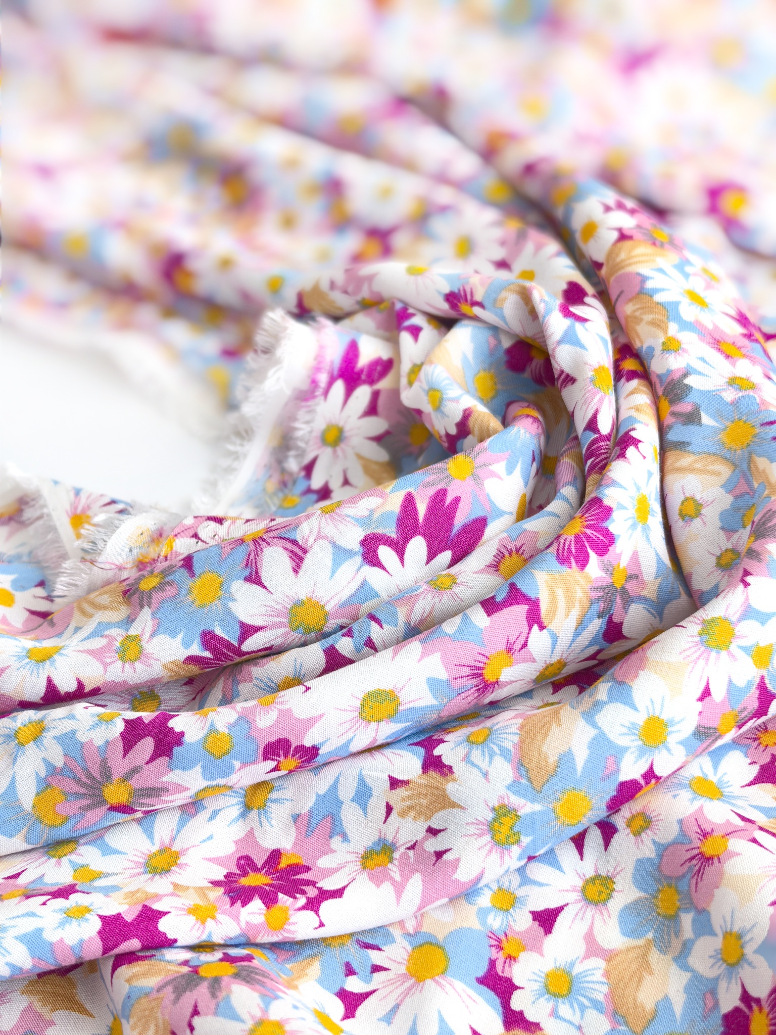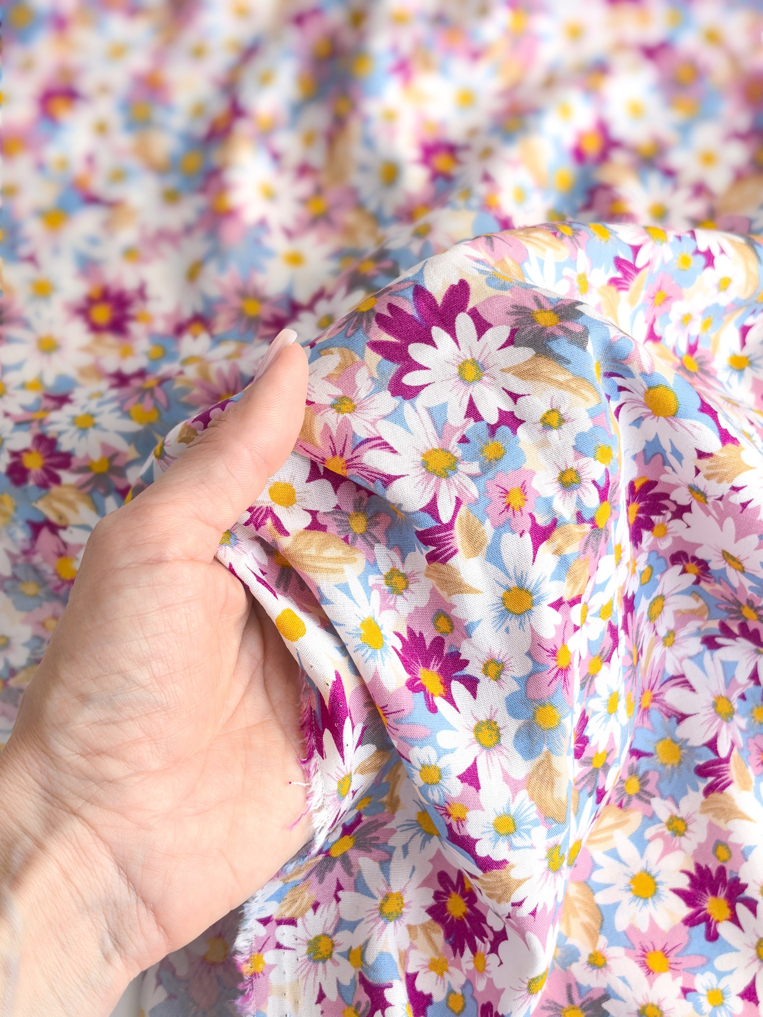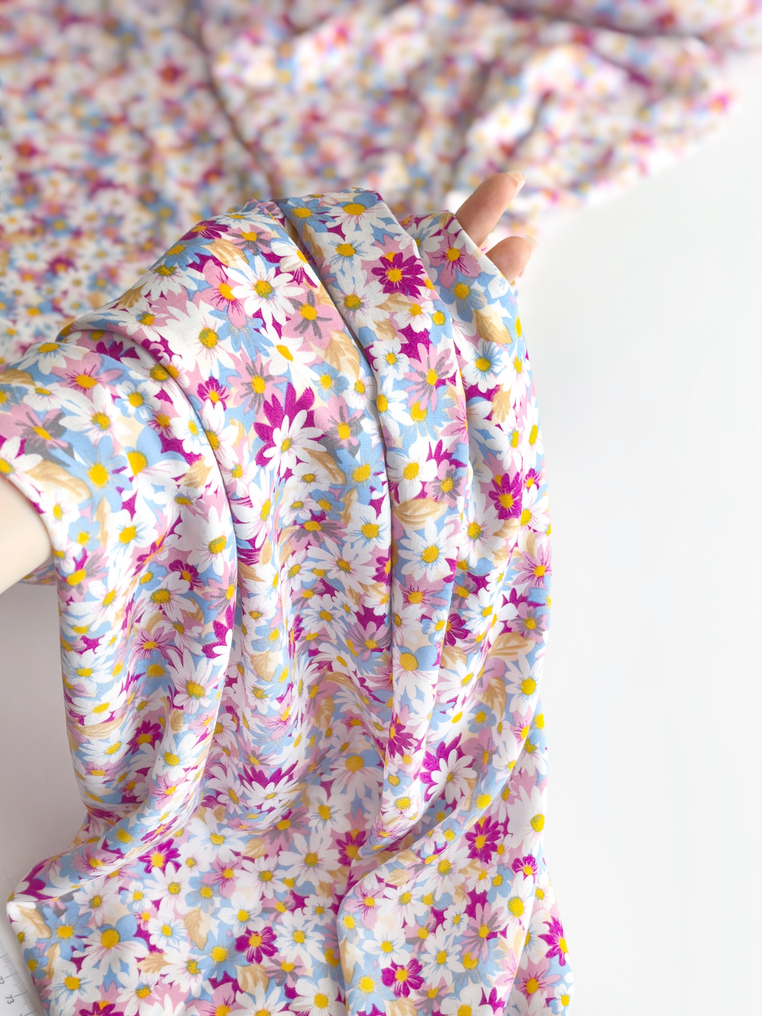 Летящая, струящаяся ткань, нежная и приятная на ощупь. Не просвечивает, не тянется, не электризуется. Воздушная и красиво драпируется. Идеальна для пошива платьев, блуз, юбочек, рубашек, широких брюк на резинке.