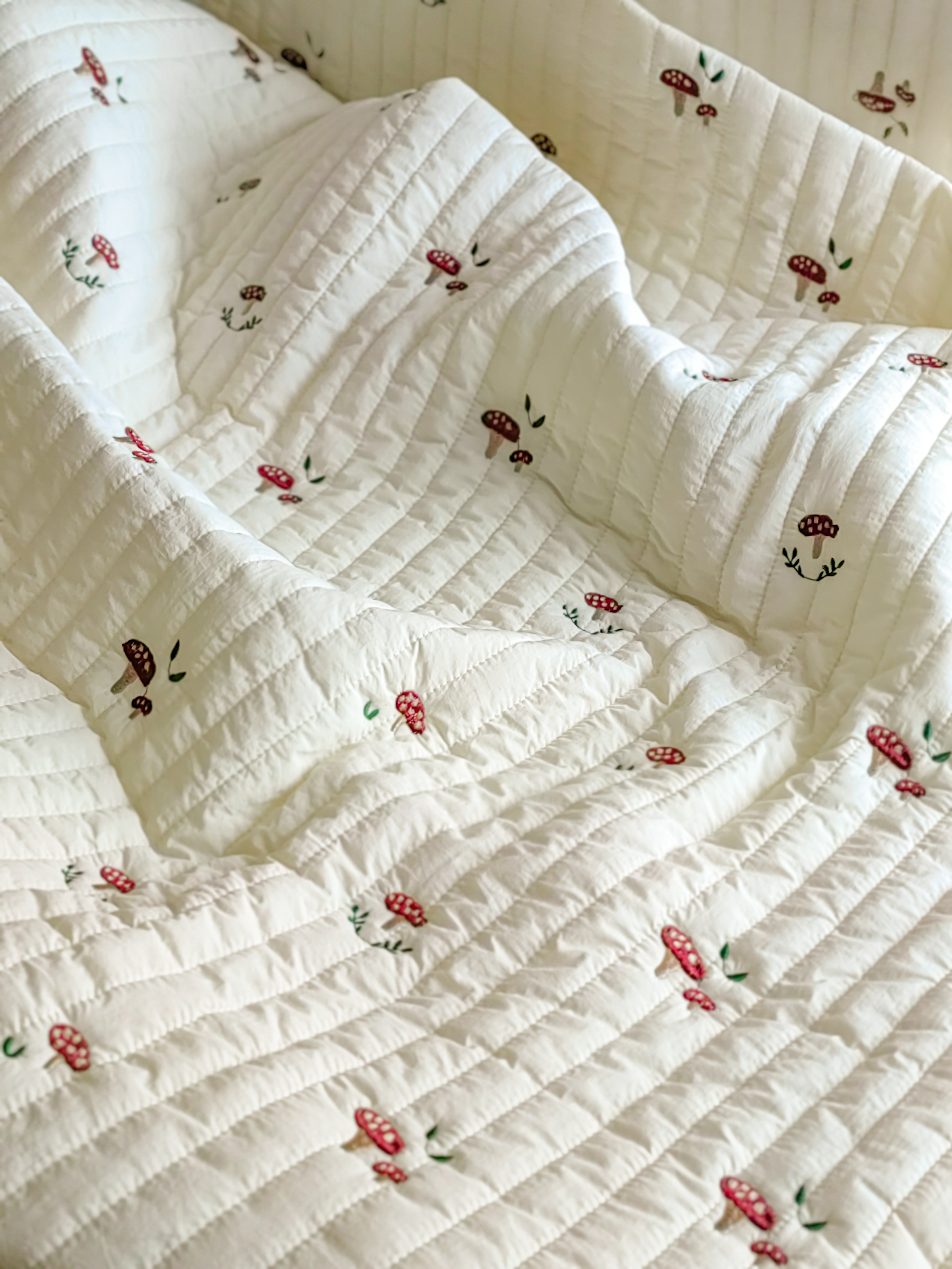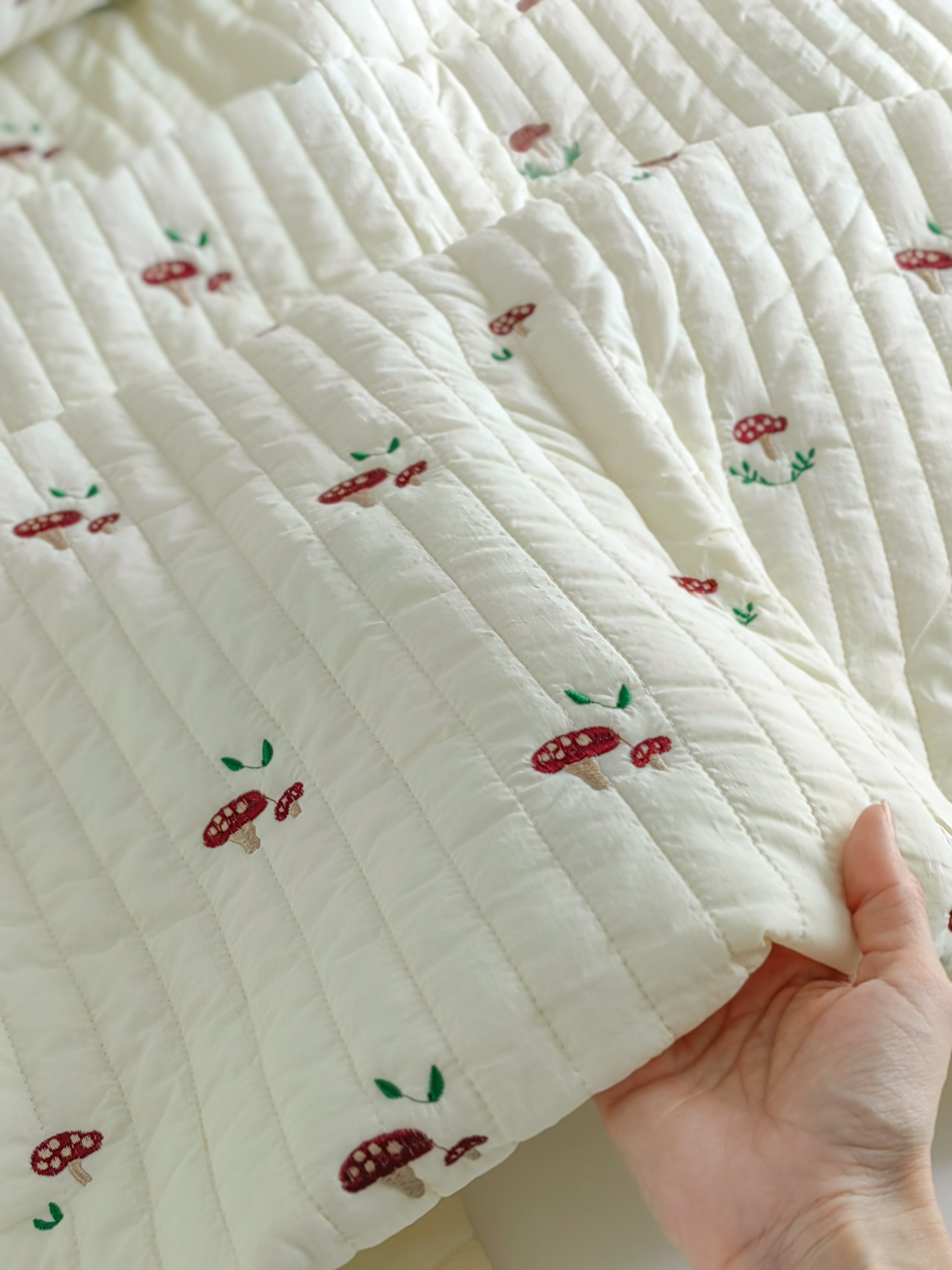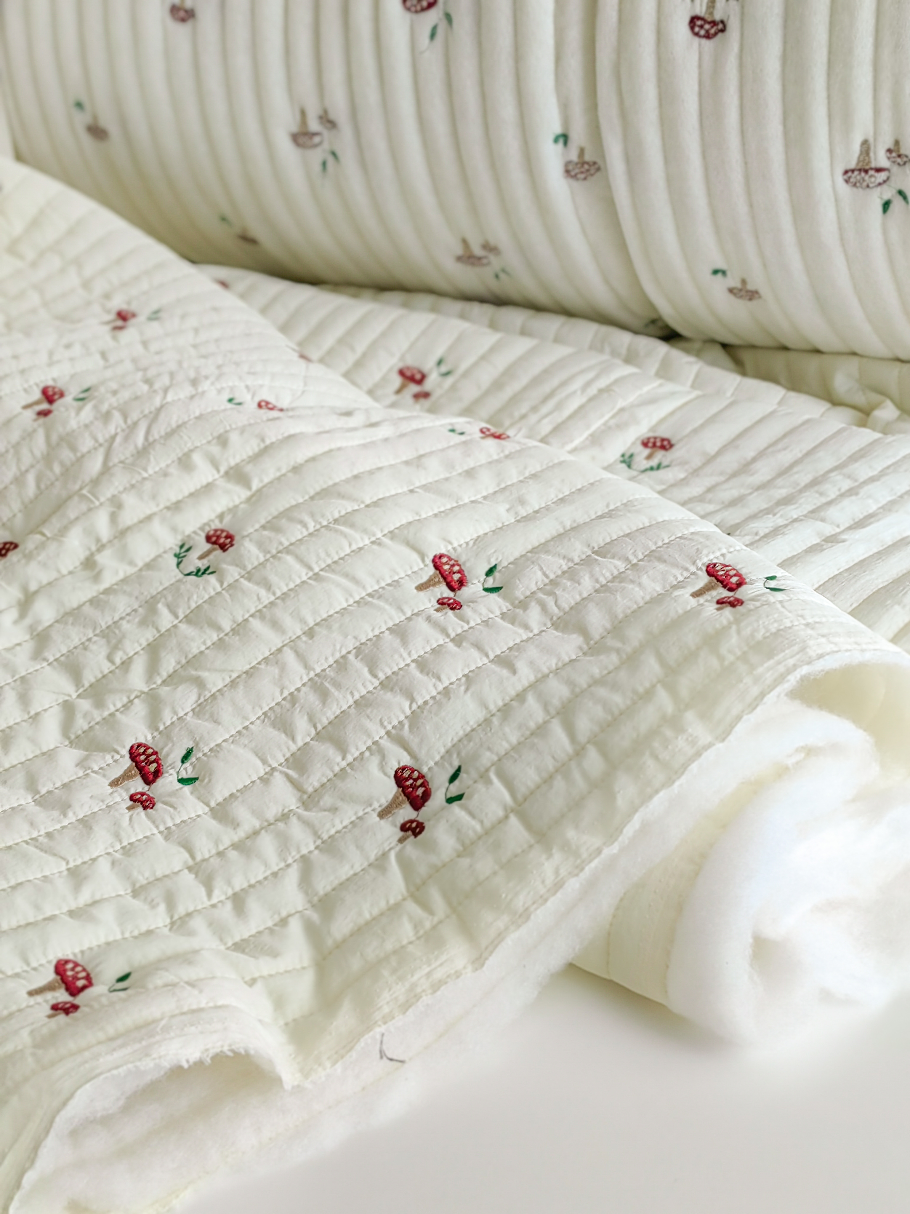 Милейшая стежка на синтепоне в молочном оттенке с вышитым принтом. Мягкая, как облачко!