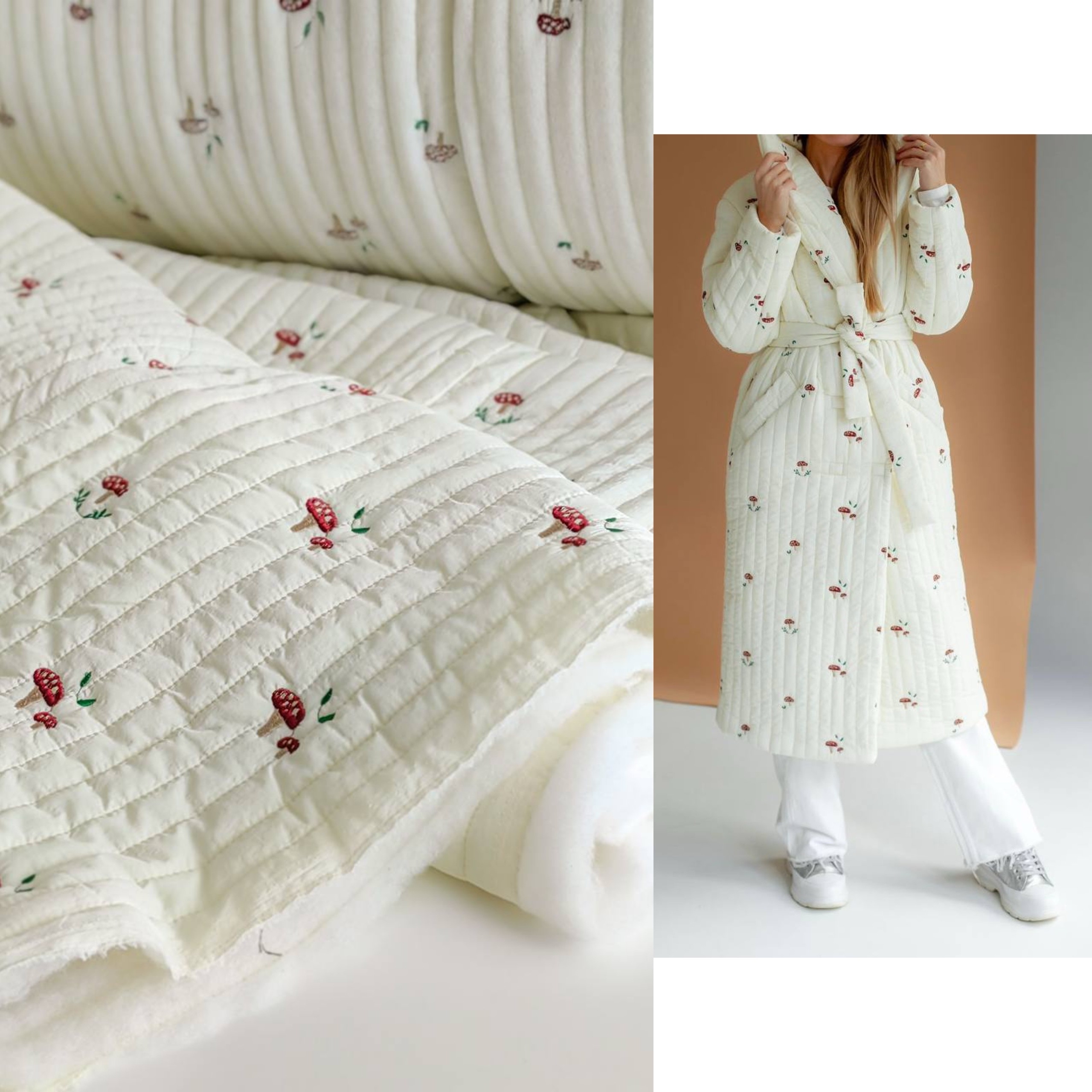 Милейшая стежка на синтепоне в молочном оттенке с вышитым принтом. Мягкая, как облачко!